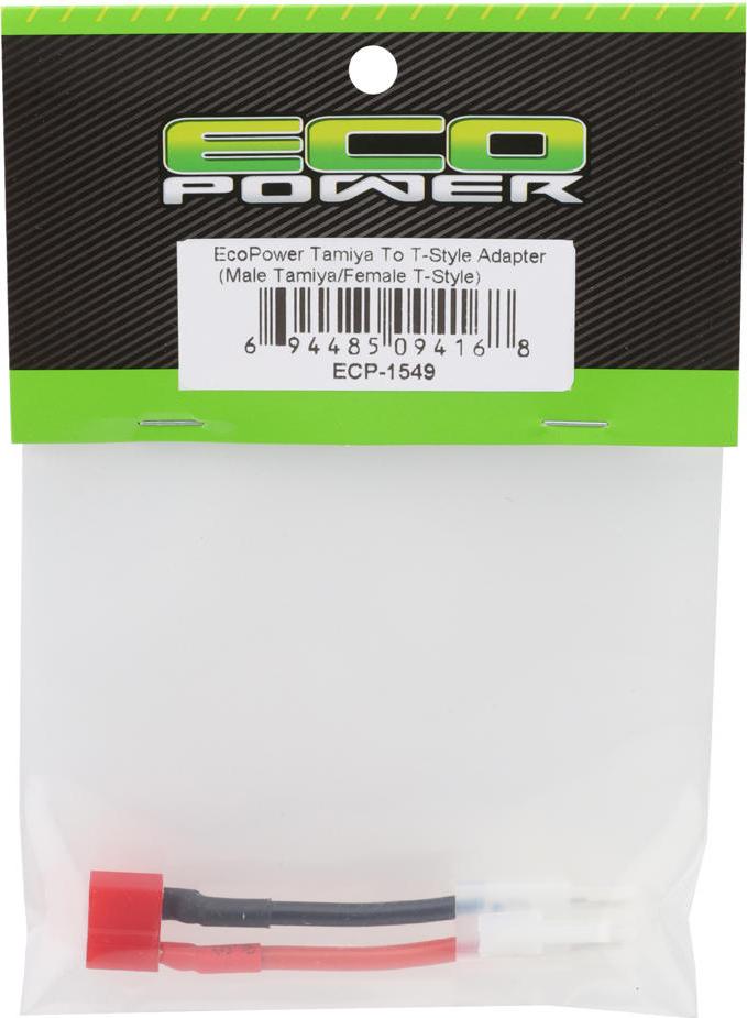 The EcoPower Male Tamiya to Female T-Style Adapter offers a simple, efficient way to connect T-Style batteries to Tamiya-equipped ESCs or chargers. Measuring three inches in total length and built with durable 14AWG wire, this adapter ensures a secure, low-resistance power transfer for consistent performance. It’s a convenient and dependable solution for hobbyists needing versatile connectivity without sacrificing quality or current flow.
