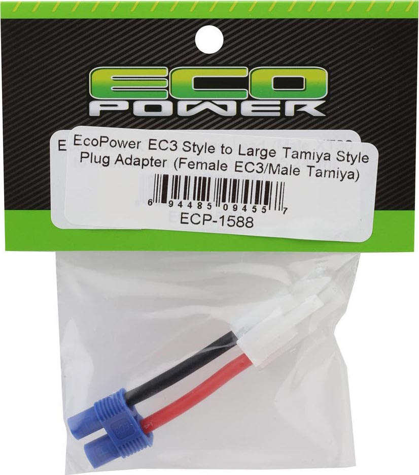 The EcoPower Female EC3 to Male Tamiya Adapter offers a simple, efficient way to connect Tamiya batteries to EC3-equipped ESCs or chargers. Measuring three inches in total length and built with durable 14AWG wire, this adapter ensures a secure, low-resistance power transfer for consistent performance. It’s a convenient and dependable solution for hobbyists needing versatile connectivity without sacrificing quality or current flow.