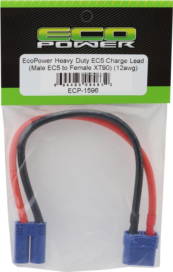 The EcoPower Heavy Duty Male EC5 to Female XT90 12AWG Charge Lead delivers reliable, high-current performance for demanding charging setups. Built with durable 12AWG wire, it ensures efficient power transfer and minimal resistance, making it perfect for high-capacity batteries. Designed for compatibility with Cayote 2-Force X5, Junsi 456DUO, 458DUO, and other XT90-equipped chargers, this adapter provides a secure, low-loss connection that stands up to repeated use.