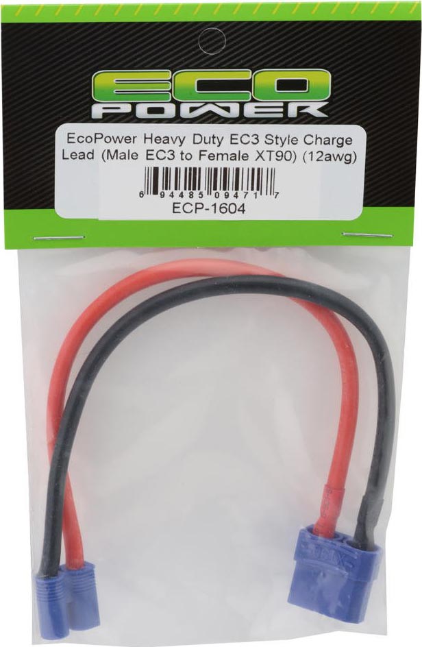 The EcoPower Heavy Duty Male EC3 to Female XT90 12AWG Charge Lead delivers reliable, high-current performance for demanding charging setups. Built with durable 12AWG wire, it ensures efficient power transfer and minimal resistance, making it perfect for high-capacity batteries. Designed for compatibility with Cayote 2-Force X5, Junsi 456DUO, 458DUO, and other XT90-equipped chargers, this adapter provides a secure, low-loss connection that stands up to repeated use.