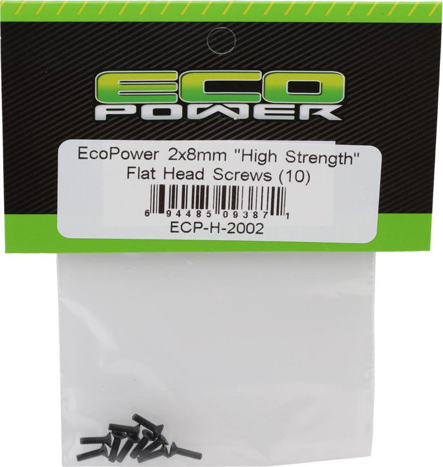 This is a pack of EcoPower 2mm "High Strength" Steel Flat Head Screws.