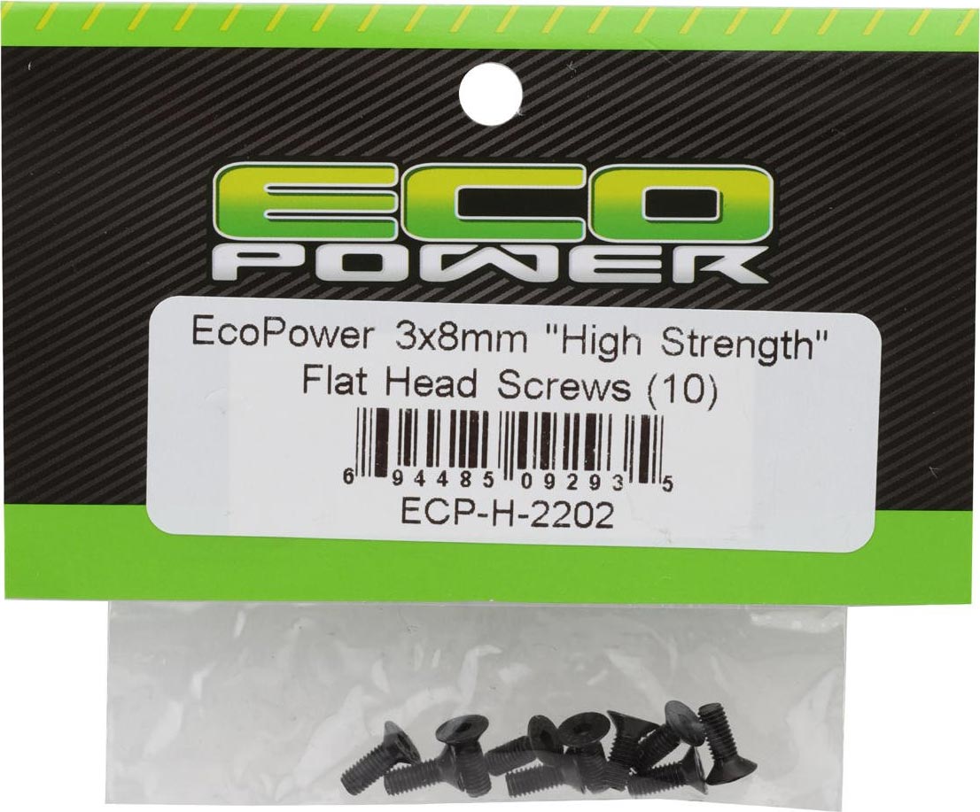 3mm "High Strength" Steel Flat Head Screws (10) (3x8mm)