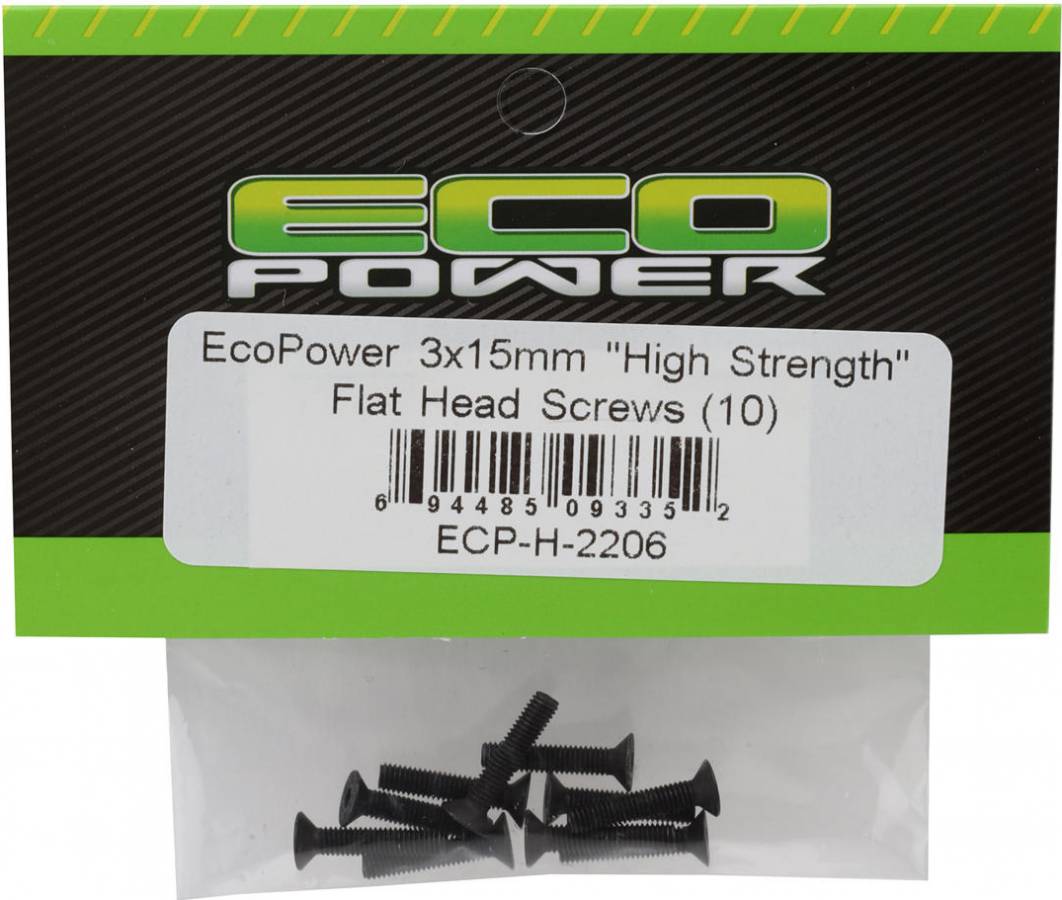 3mm "High Strength" Steel Flat Head Screws (10) (3x15mm)