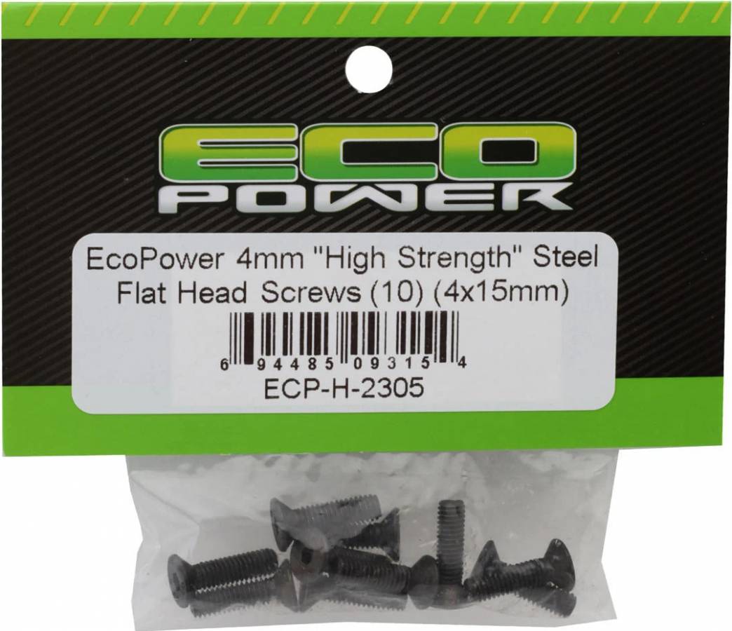 4mm "High Strength" Steel Flat Head Screws (10) (4x15mm)