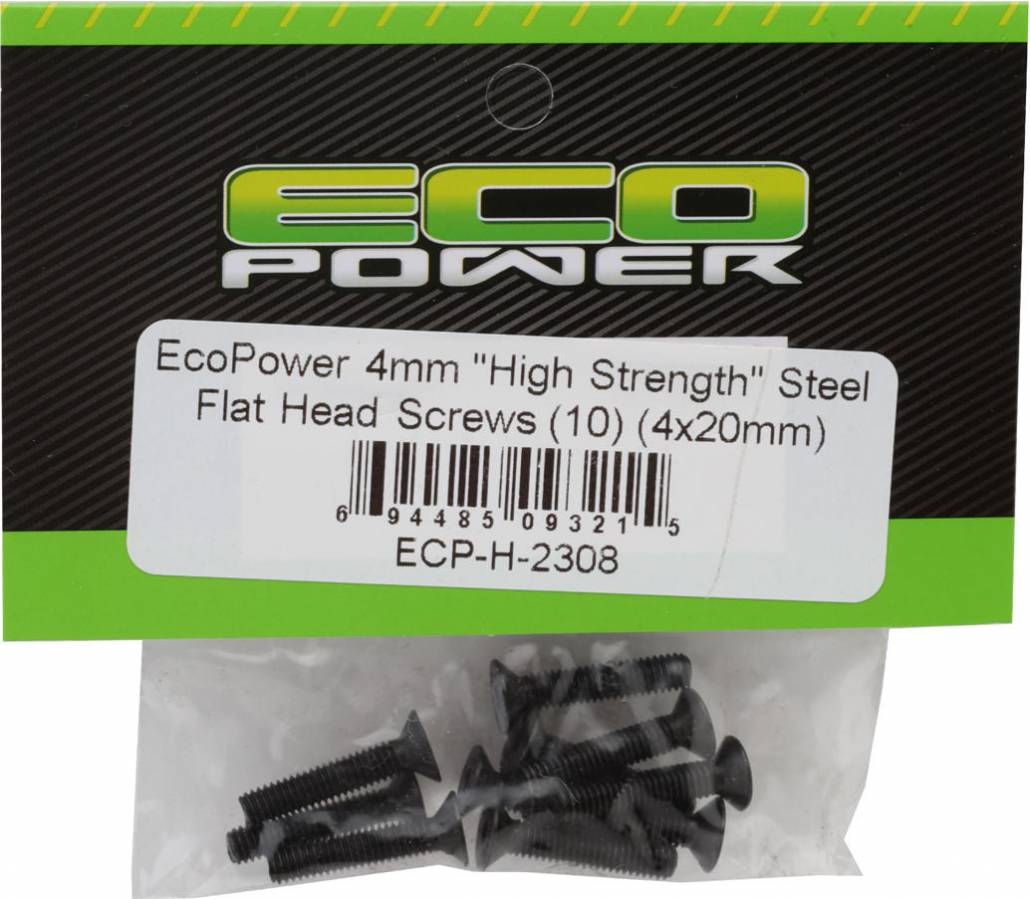 4mm "High Strength" Steel Flat Head Screws (10) (4x20mm)