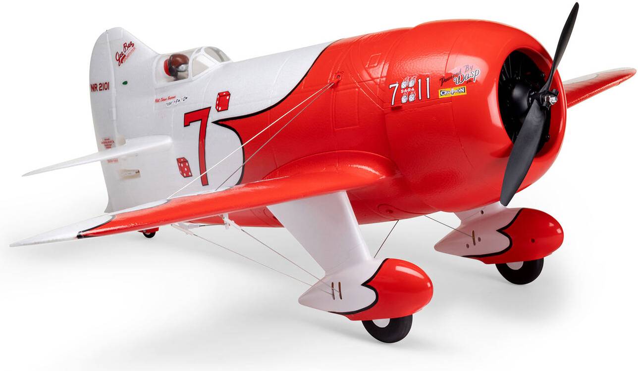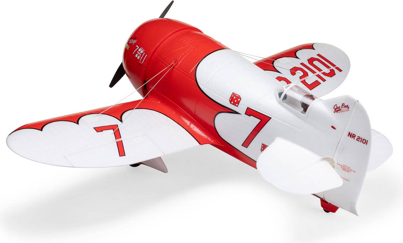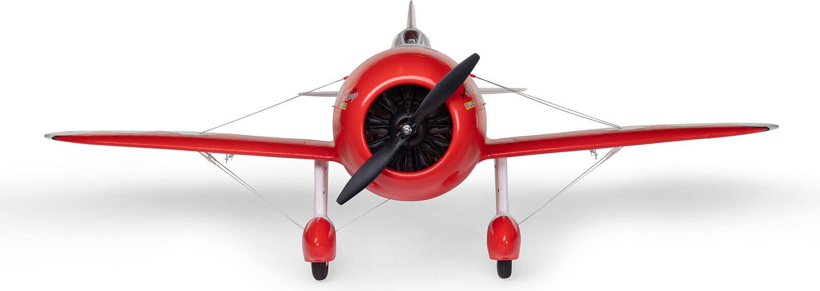 Gee Bee aircraft were among the pioneering racing airplanes that captivated just about everyone during aviation's Golden Age. Their cutting-edge, teardrop-shaped designs, coupled with small wings, required a skillful hand to fly well, but with the right pilot, they dominated the racecourse. The E-flite® Gee Bee R-2 1.0m is a faithful replica of the iconic aircraft, featuring an abundance of scale detail along with modern features and technologies to deliver an unmatched flying experience. It assembles quickly and is sized to be easily stored and transported without disassembly. The Bind-N-Fly® Basic version is equipped with enhanced AS3X+® technology that smooths out the effects of wind and turbulence like never before, plus optional-use SAFE® Select technology that makes it easier to fly. Both versions include Spektrum digital, metal-geared servos, a 70A Smart Lite ESC, and a 4S-compatible motor.