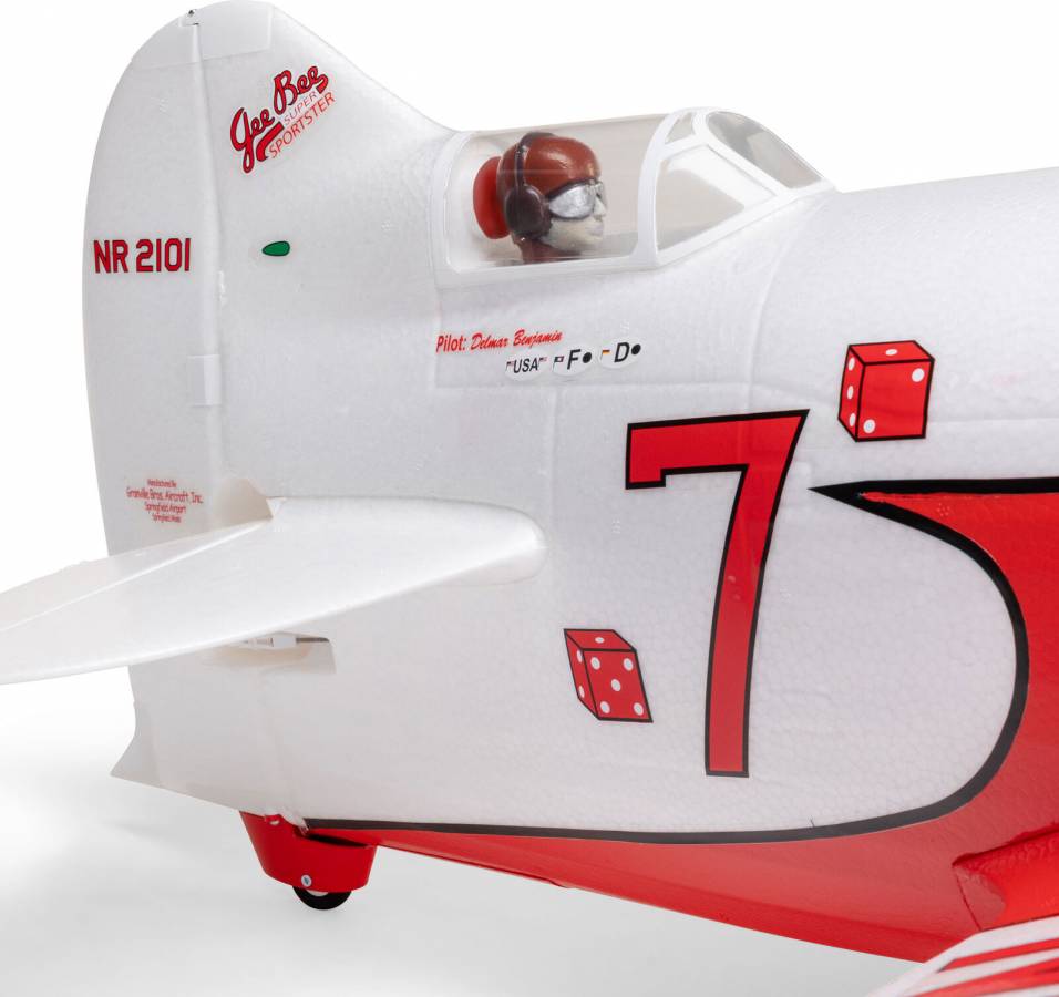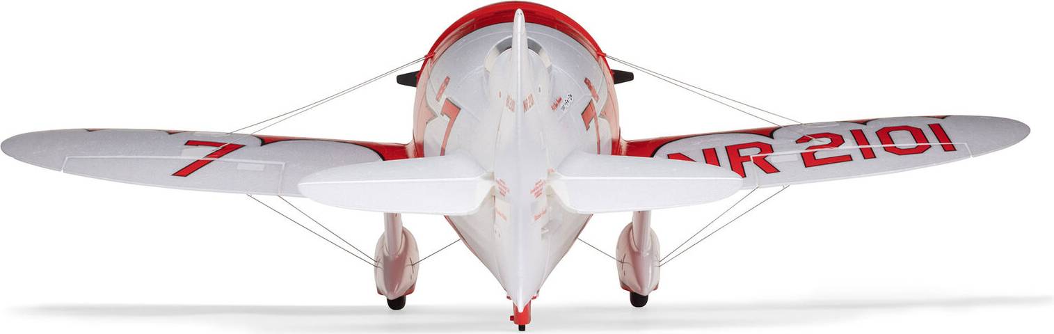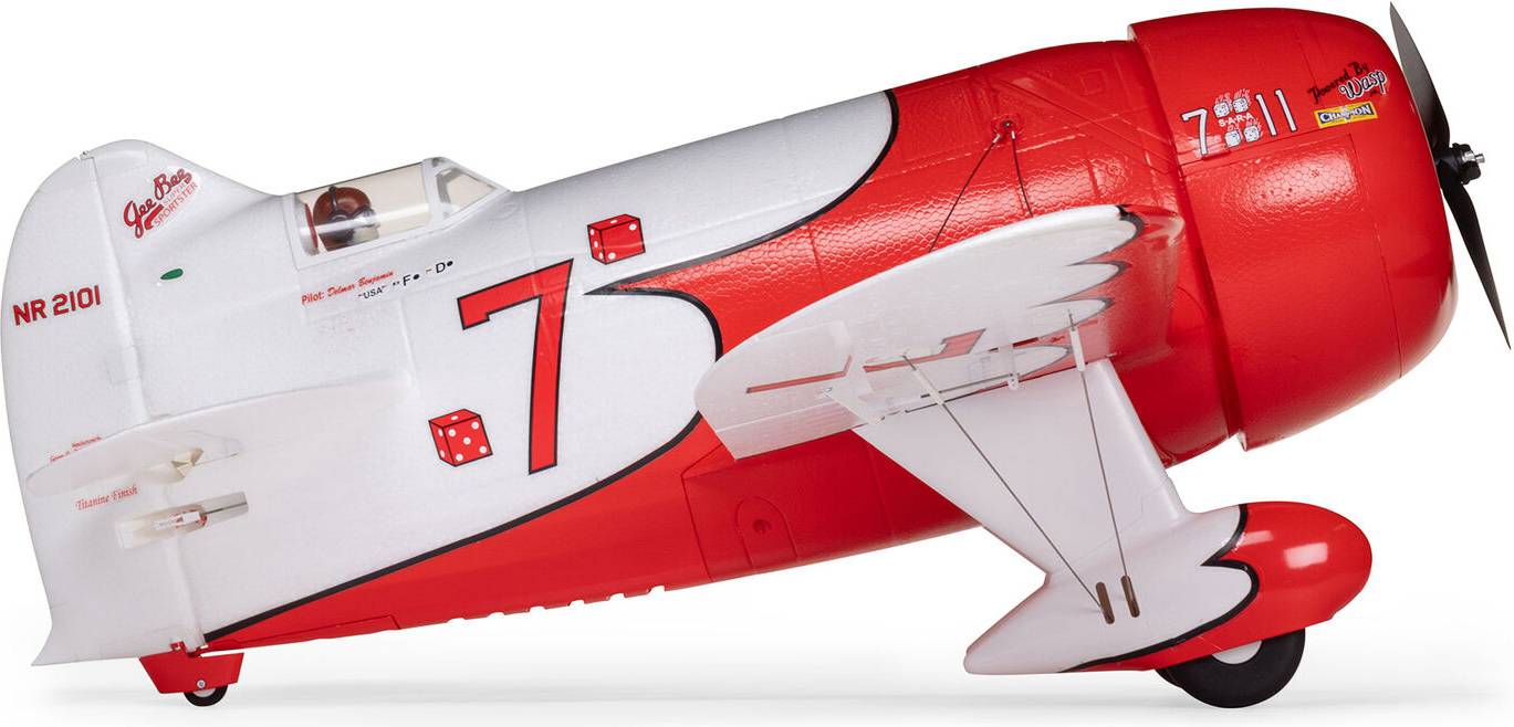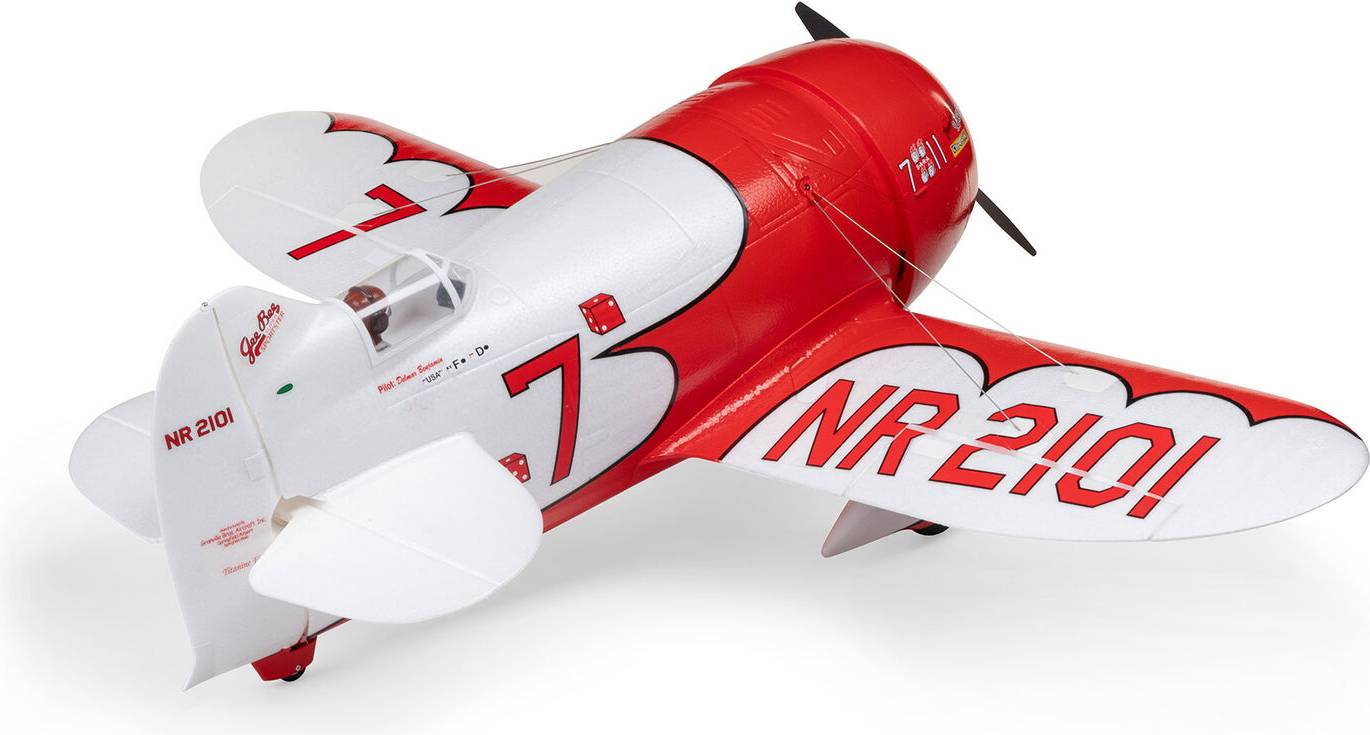 Gee Bee aircraft were among the pioneering racing airplanes that captivated just about everyone during aviation's Golden Age. Their cutting-edge, teardrop-shaped designs, coupled with small wings, required a skillful hand to fly well, but with the right pilot, they dominated the racecourse. The E-flite® Gee Bee R-2 1.0m is a faithful replica of the iconic aircraft, featuring an abundance of scale detail along with modern features and technologies to deliver an unmatched flying experience. It assembles quickly and is sized to be easily stored and transported without disassembly. The Bind-N-Fly® Basic version is equipped with enhanced AS3X+® technology that smooths out the effects of wind and turbulence like never before, plus optional-use SAFE® Select technology that makes it easier to fly. Both versions include Spektrum digital, metal-geared servos, a 70A Smart Lite ESC, and a 4S-compatible motor.