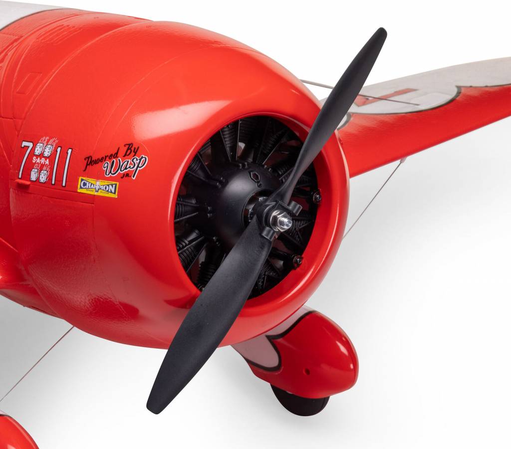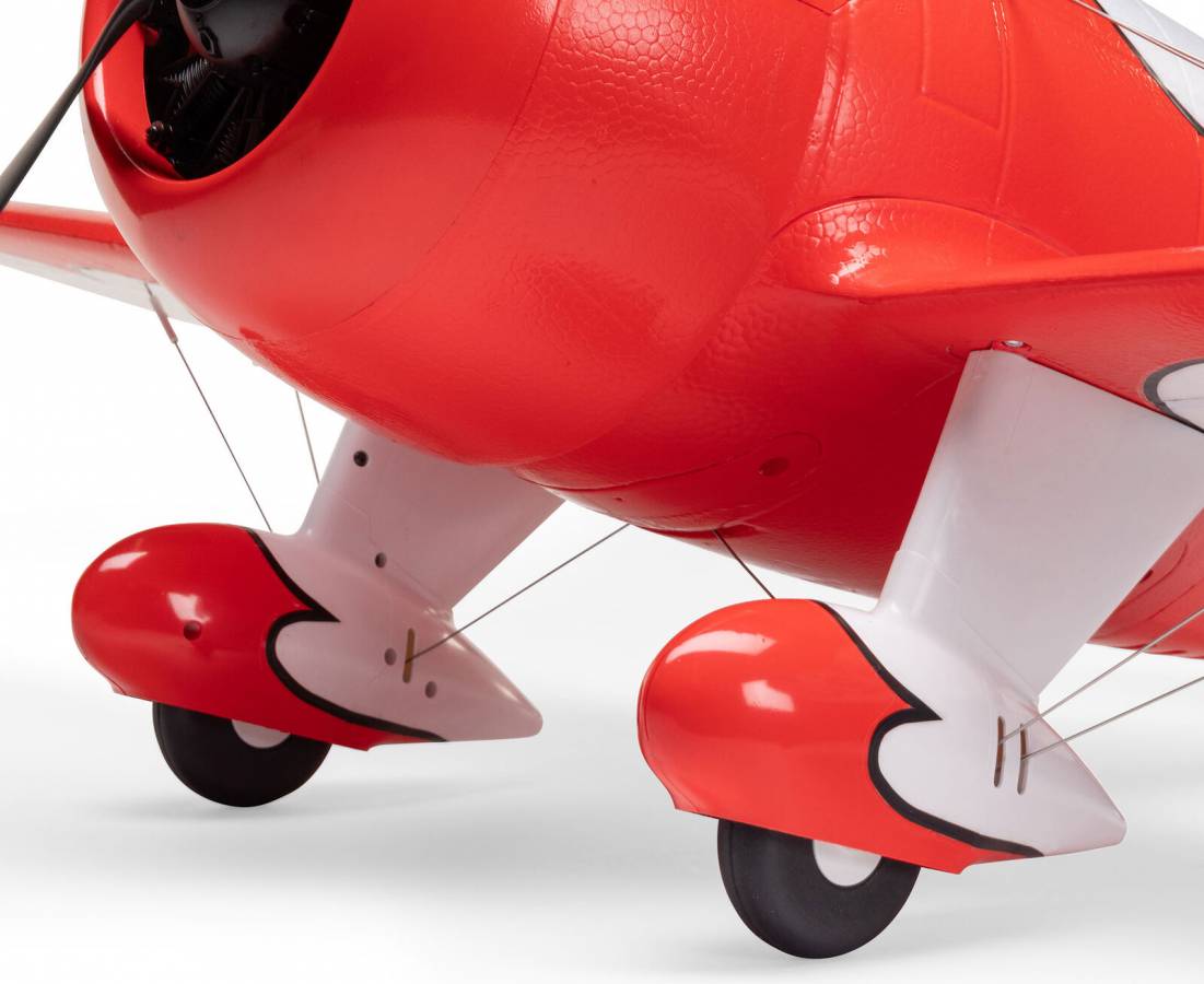 It features an authentic outline and an abundance of scale details, including molded-in panel lines, a simulated radial engine, flying wires, and a pilot figure. Functional features include shock-absorbing landing gear and wheels specifically designed to make it easier to land, along with a steerable tailwheel. The one-piece wing includes hands-free connections, yet the Gee Bee 1.0m is sized to be easy to store and transport without disassembly. The factory-installed digital and metal-geared servos provide precise and reliable control at every speed. The power system includes a Spektrum™ outrunner motor and an Avian™ 70-amp Smart Lite ESC, which are compatible with popular 4S 3200-5000mAh batteries. The Bind-N-Fly® Basic version is also equipped with a factory-installed Spektrum AR631+ receiver featuring exclusive and enhanced AS3X+, along with optional-use SAFE Select technologies to provide you with the outstanding control you always wanted but never thought possible in a Gee Bee model. And it all adds up to deliver a model that's a dream to fly while offering an exciting and incredibly unique scale flight experience.