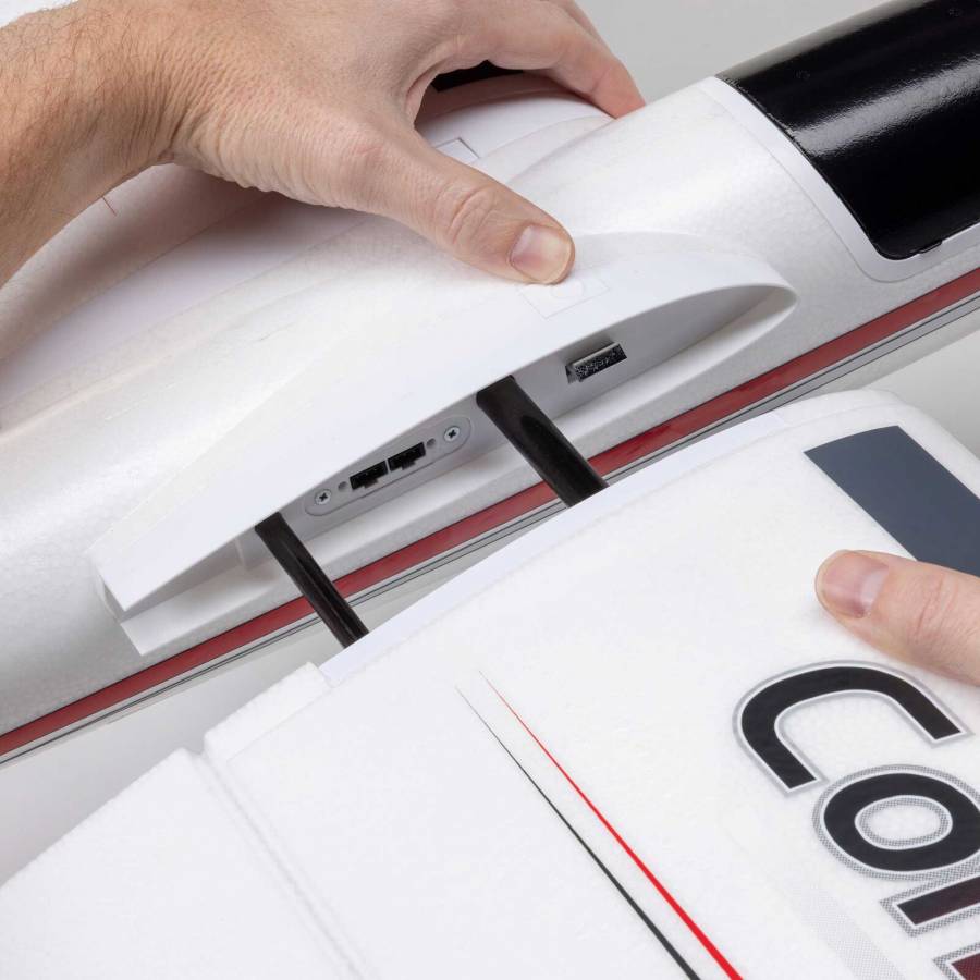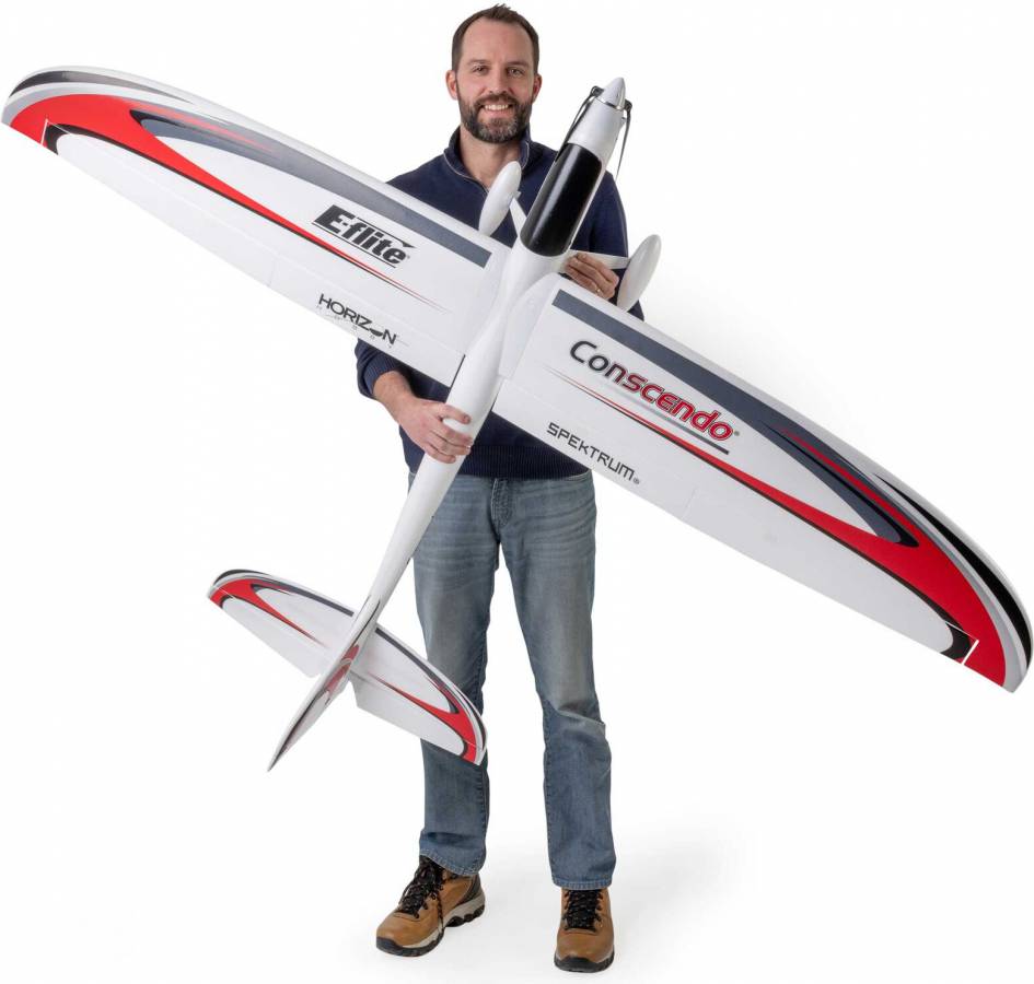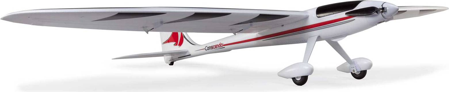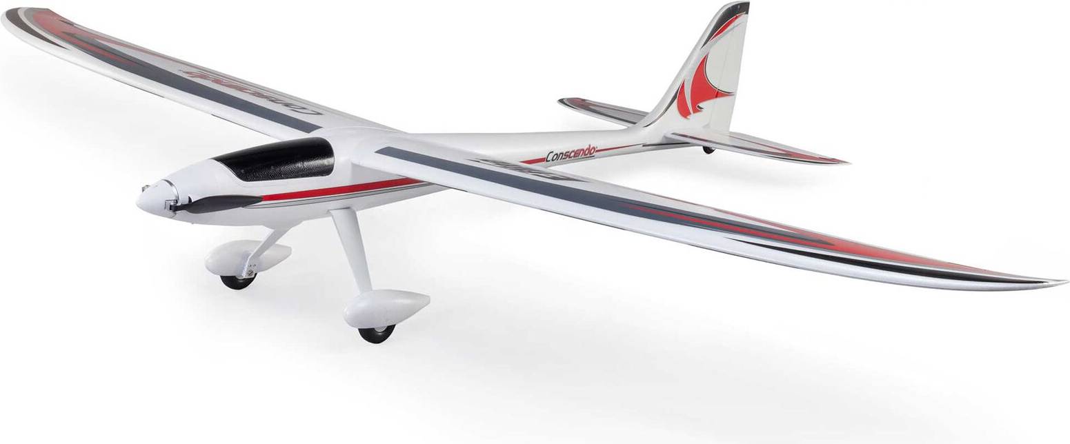 Many low-time to experienced pilots appreciate the one-of-a-kind blend of smooth soaring, sport, high-speed, and aerobatic flight performance the incredibly popular UMX and Conscendo Evolution 1.5m models offer. So much so that they've often asked for an even larger version. The E-flite Conscendo 2.0m is now the largest, most powerful, capable, and feature-rich Conscendo yet! The brushless power system, including a telemetry-capable 70-amp ESC, delivers plenty of thrust for fast climbs to soaring altitude, sport flying, and aerobatics with 4S 3200mAh to 5000mAh batteries. Or it delivers even more speed and thrust for unlimited vertical and aerobatic performance with 6S batteries. The higher-density EPO airframe with composite reinforcement throughout has the additional strength and stiffness to handle all that power and performance. It's also been designed to assemble extremely quickly and easily without any tools or fasteners. The two-piece stabilizers simply snap into place, while the two-piece wing with hands-free connections also snaps into or out of place for convenient storage and transport. Even the optional-use landing gear with wheel pants snaps into/out of place quickly, and along with the steerable tailwheel that's tucked away in the bottom of the rudder, makes it possible to take off from and land on smooth surfaces.