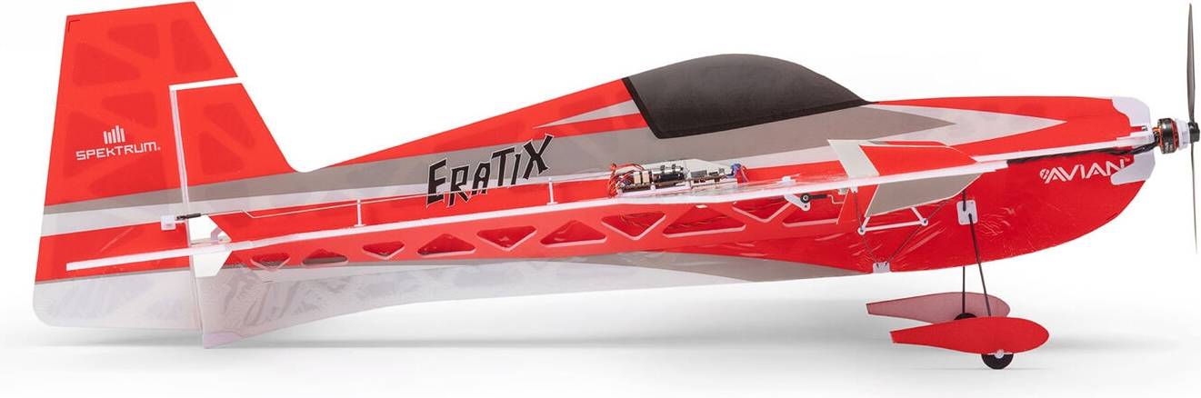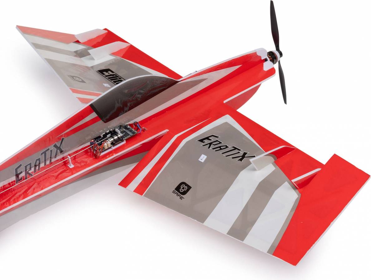 The E-flite® Eratix 3D FF (Flat Foamy) 450mm offers the aggressive aerobatic plus smooth sport and slow-flying performance of flat foam models – without all the hassles of buying components for and building one! It arrives fully factory assembled and ready to bind to your compatible Spektrum transmitter, allowing you to fly in almost no time. Inspired by the UMX™ Extra 300 and Yak 54 flat foamy models, its laser-cut and composite reinforced airframe makes it light enough to fly extreme 3D maneuvers indoors in spaces no larger than a living or conference room, or almost anywhere outdoors. The factory-installed brushless outrunner motor with a prop saver is compatible with popular 2S 280–350mAh batteries. It's also equipped with expertly tuned AS3X® and SAFE® Select technologies, plus it provides real-time battery voltage and other telemetry information to compatible transmitters. This makes it a versatile addition to the hangar for a wide variety of intermediate to experienced pilots!