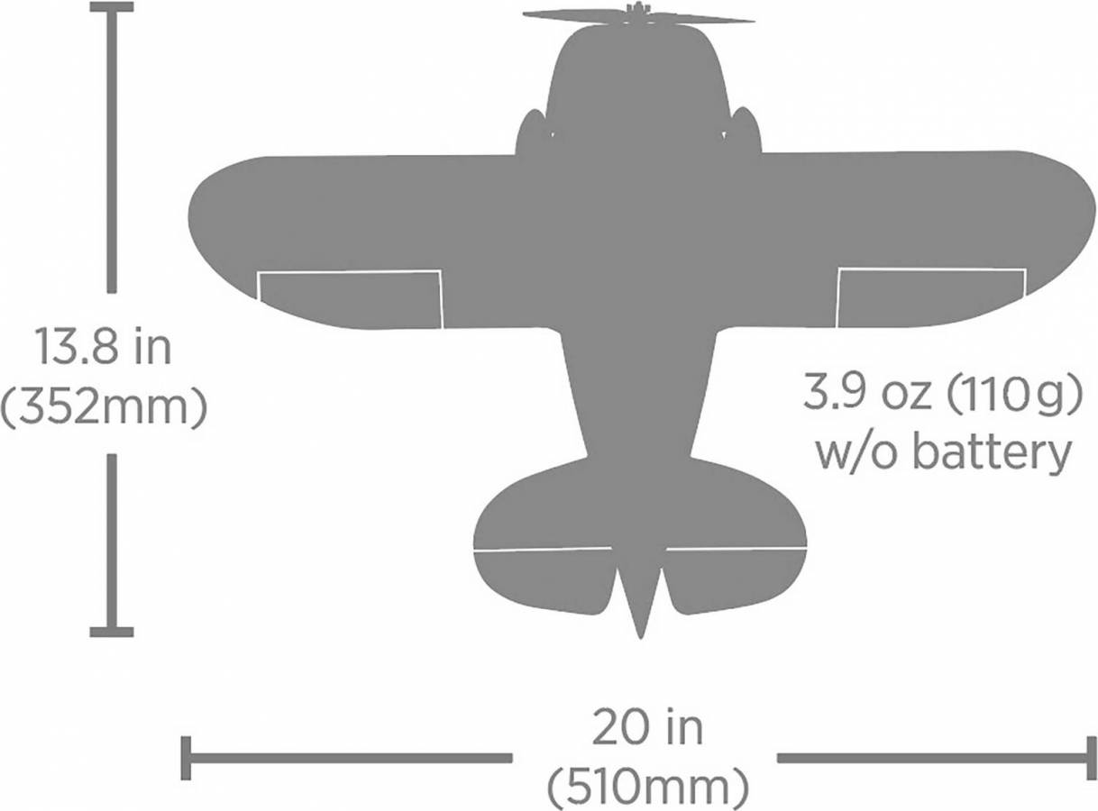 The E-flite® UMX™ Gee Bee R-2 is ready to soar through the skies in more places and smaller spaces thanks to its handling that has more in common with a friendly sport model than a short-coupled golden age racer. Awe-inspiring with an authentic scale outline and abundant details such as flying wires plus a pilot, this replica offers handling so remarkably smooth, you'll want to fly it every day. AS3X® technology works behind the scenes to help you enjoy the outstanding stability and control you always wanted but never thought possible in such a small airplane, let alone in a model of the Gee Bee. Optional-use SAFE® Select flight envelope protection technology delivers automatic self-leveling plus pitch and bank angle limits that make it possible to successfully fly such a unique design even if you're an intermediate RC pilot. It also features a quieter and more powerful 2S and 3S compatible motor, along with a modified fuselage and stronger wing, designed to handle the extra weight, power, and speed when using 3S 280–300mAh batteries. Best of all, it arrives 100% factory-assembled and ready to bind to your favorite Spektrum™ DSM2/DSMX®-equipped transmitter so you can be flying in almost no time! And it all adds up to deliver a model of the classic Gee Bee that's a dream to fly while offering an exciting and incredibly unique flight experience from large yards and small parks to sports fields and beyond!