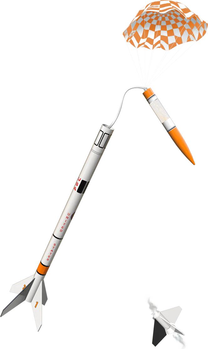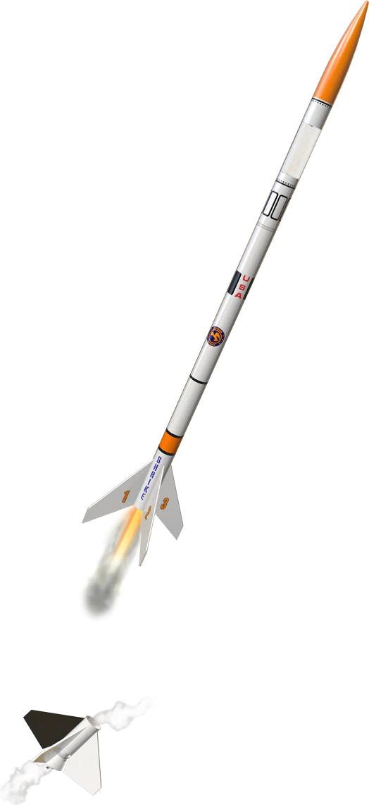 The Astron Shrike flies on standard 18mm Estes engines, with a range of booster and upper-stage combinations. Recommended engines include A8-0, B6-0, and C6-0 for the booster, and A8-3, A8-5, B6-6, C6-5, and C6-7 for the upper stage. With proper setup, you can enjoy dramatic two-stage flights followed by smooth recoveries under the 12 inch parachute.