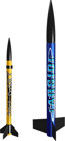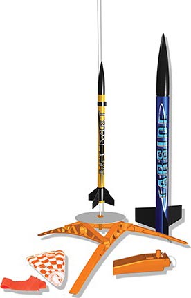 At 16.5 inches in length, the Farside rocket delivers 1100 foot flights, but is easily recovered on its colorful 12 inch parachute. The second rocket included is one of our most colorful and highest performing mini rockets. The 10.3 inch Sky Dart is pencil thin, but delivers space busting flights that make flying model rockets so much fun! Powered by our economical mini engines, the Sky Dart can easily reach altitudes of 800 to 900 feet. Recovery is by a bright orange streamer that can be seen easily after each exciting launch.