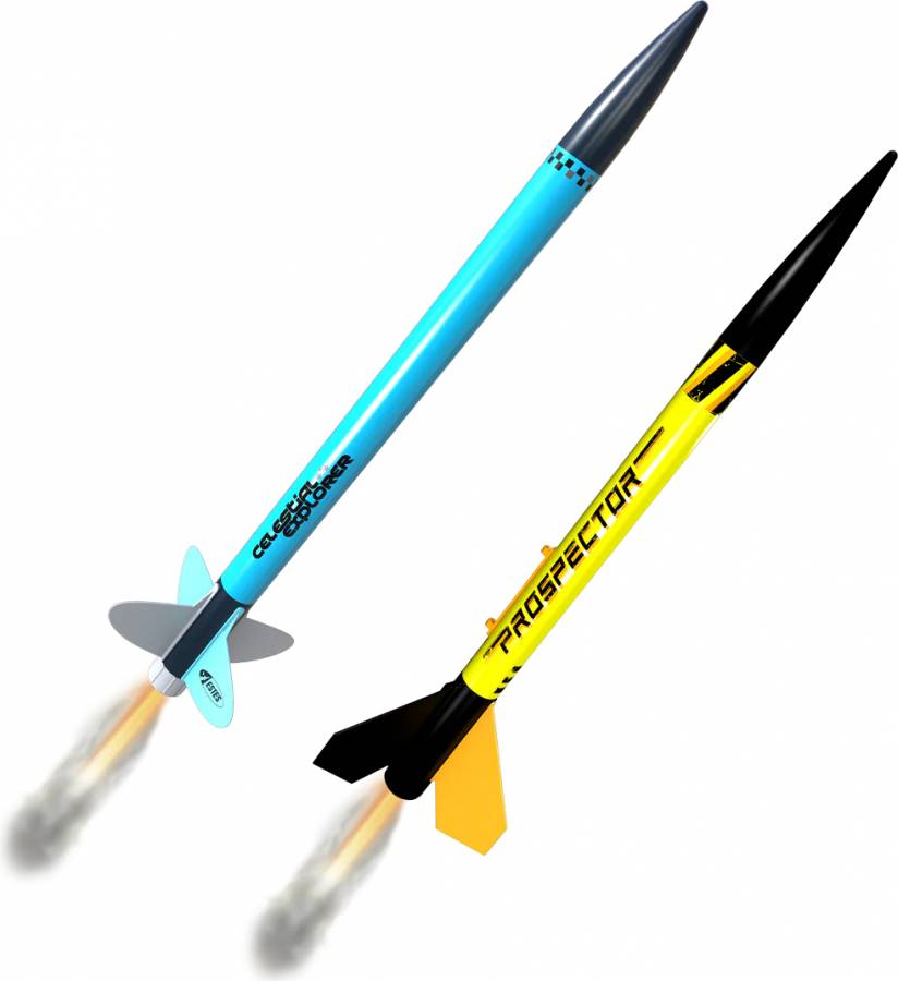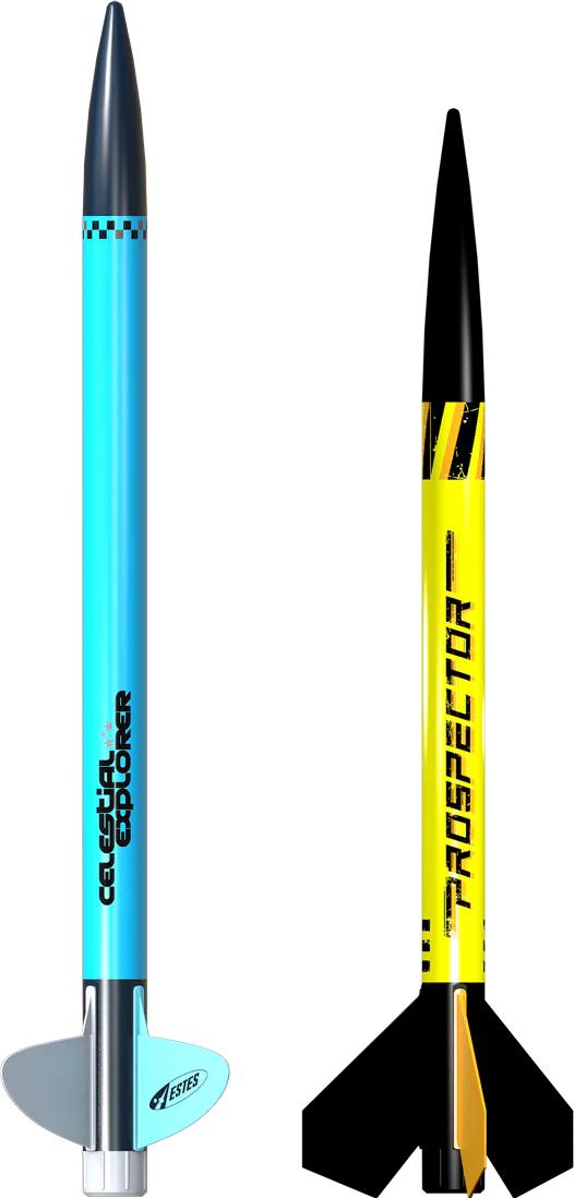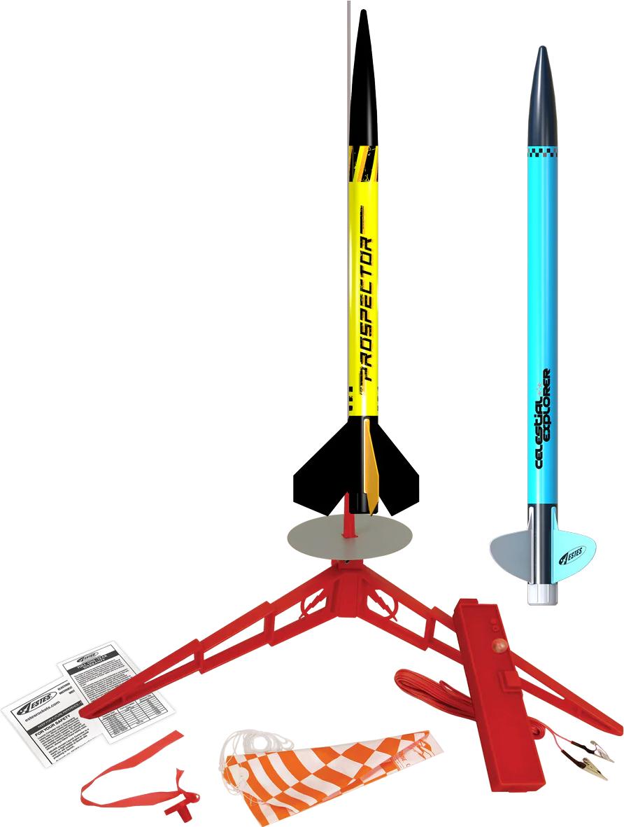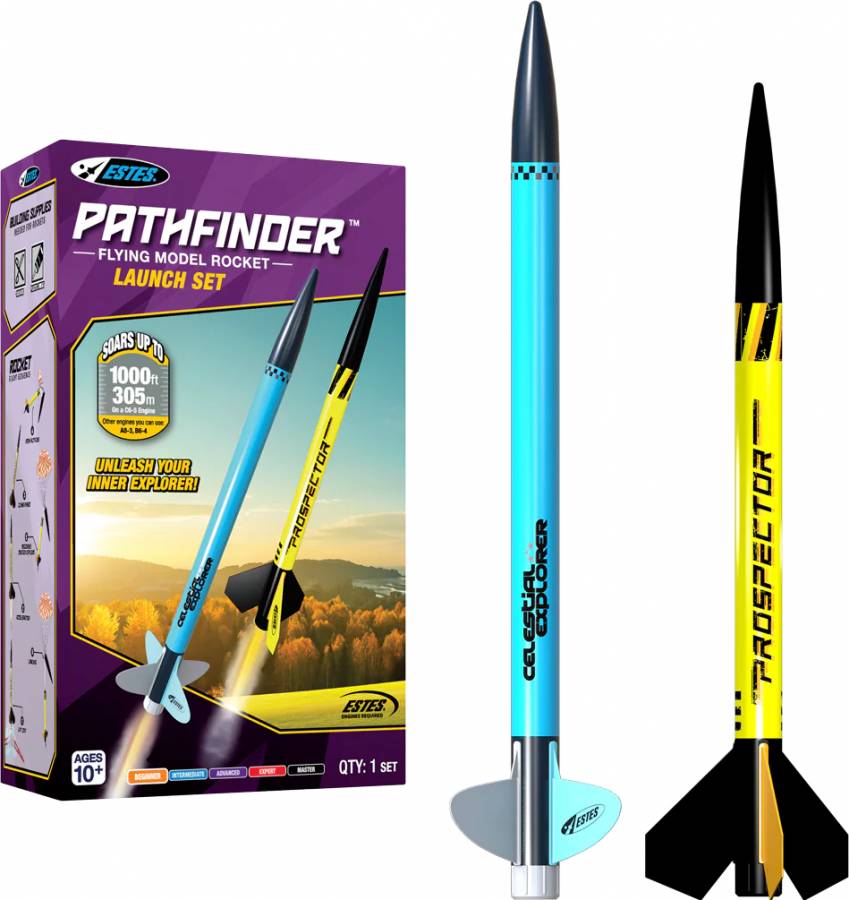 There is no better way to begin your journey into model rocketry than with the Pathfinder™ Launch Set. This complete kit gives you the excitement of building and flying two incredible rockets, the sleek Celestial Explorer and the bold Prospector. Each one features colorful graphics, durable construction, and smooth parachute recovery that deliver high-flying fun again and again.