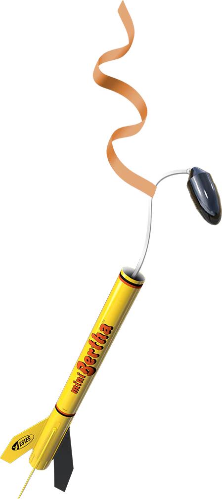 Powered by 13mm engines, the Mini Bertha climbs fast and straight, reaching heights of up to 650 feet before deploying its streamer for a smooth and visible descent.