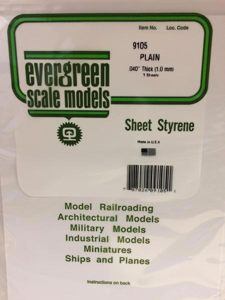 Styrene Sheet White 8 x 21 20.3 x 53.3cm .040" .10cm (3)