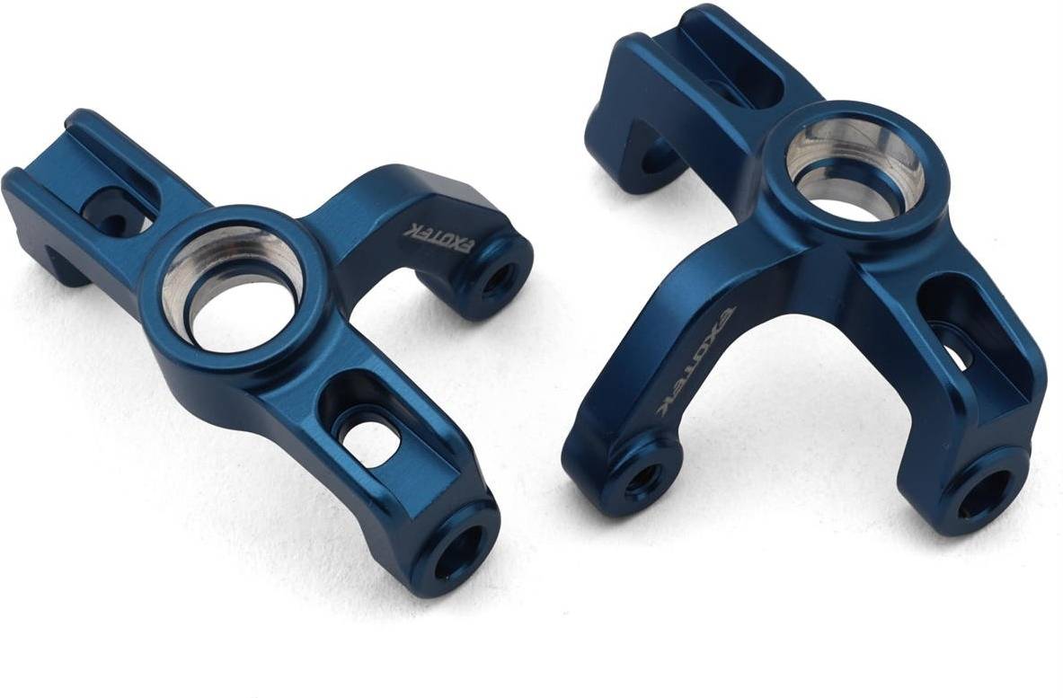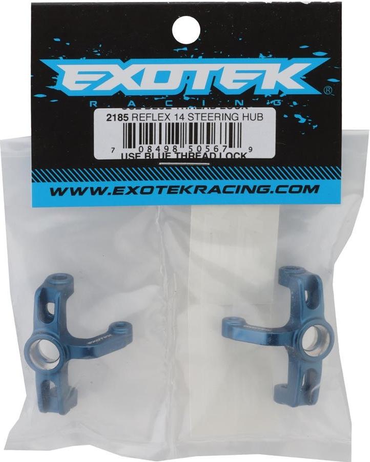 Elevate your Associated Reflex 14B, 14T, and 14MT series vehicles' steering performance with the Exotek Reflex 14 HD Aluminum Steering Hub Set. Crafted from heavy-duty aluminum alloy and boasting a polished blue finish, these steering hubs feature robust construction giving you smooth and precise steering for superb control on the track.