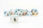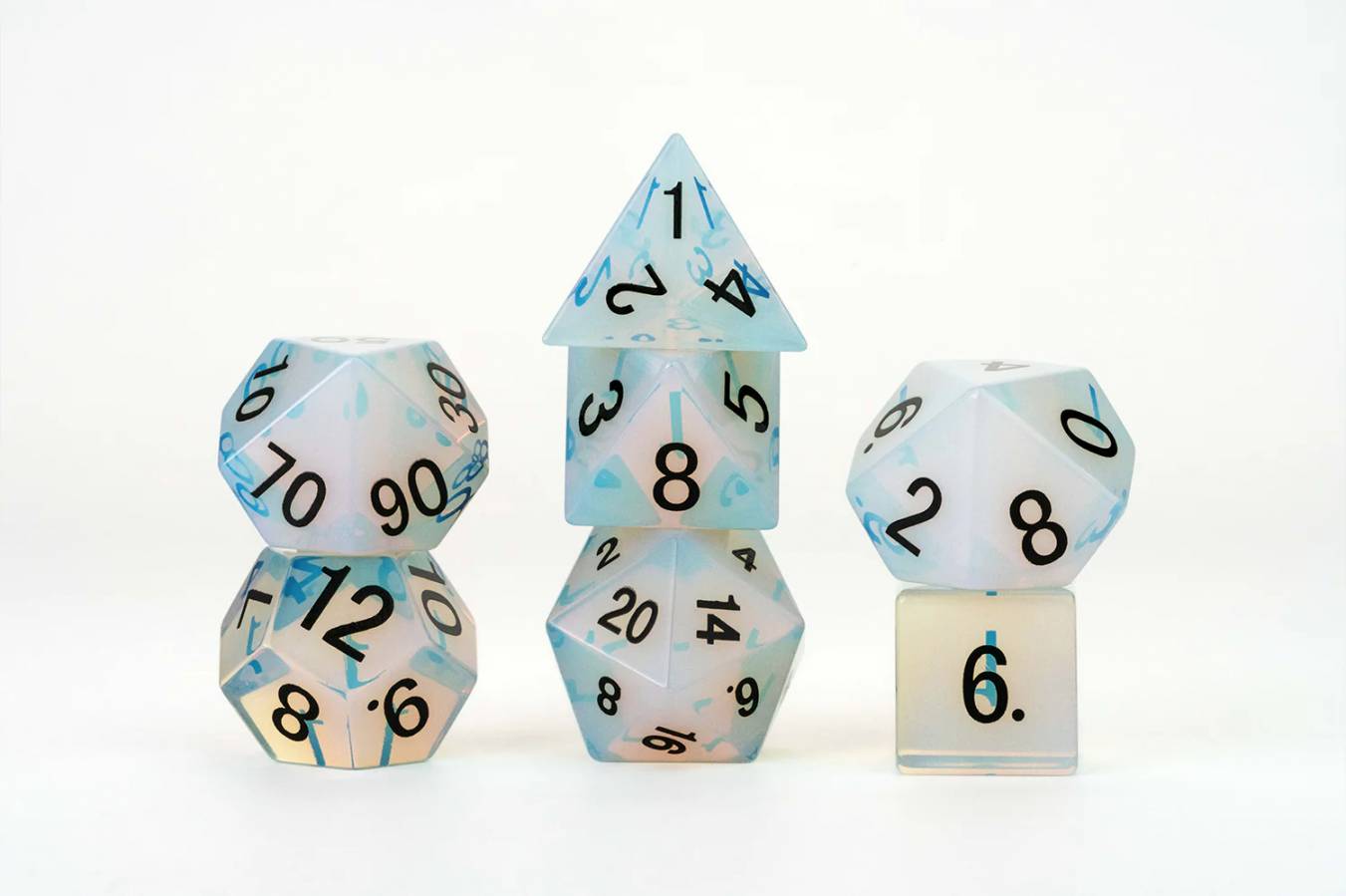 This is a full-sized 16mm polyhedral set that comes with 7 dice (d4, d6, d8, d10, d10% (00-90), d12, and d20).