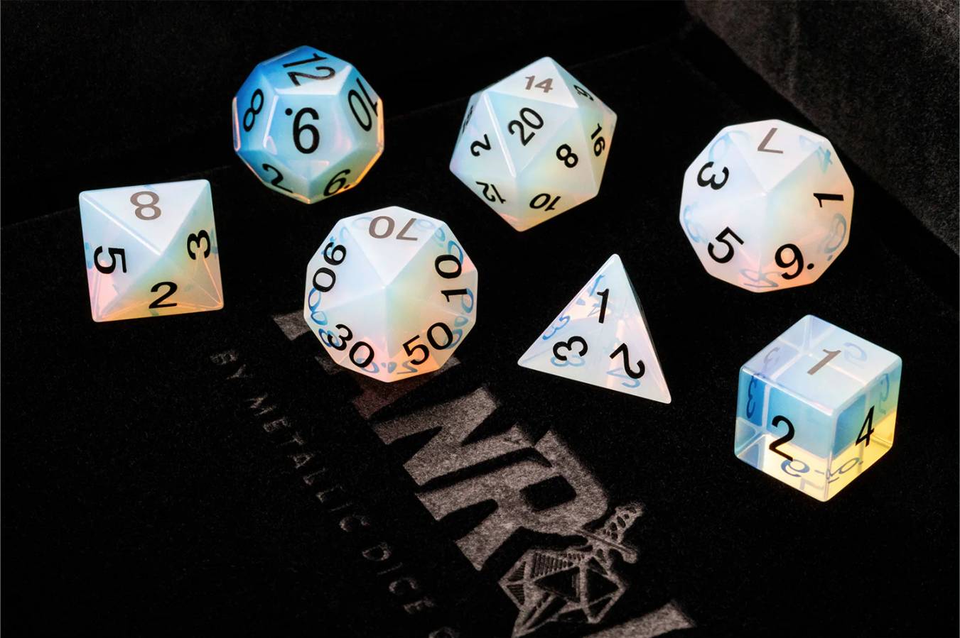 FanRoll is proud to announce an upgrade to our most premium gemstone dice. Available in four unique stones, each of these pieces was hand mined from the hands of Dwarves and hand polished to make the perfect addition to your table. With their hefty feel and captivating look, this gemstone dice set is the perfect upgrade for any gaming table.