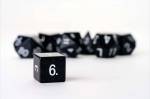 This is a full-sized 16mm polyhedral set that comes with 7 dice (d4, d6, d8, d10, d10% (00-90), d12, and d20).