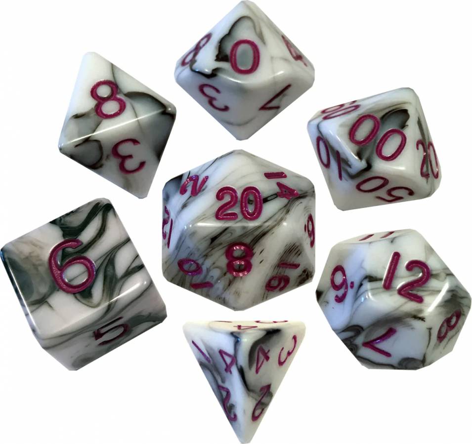 Dice Acrylic 16mm 7pc Set Marble Purple Numbers