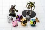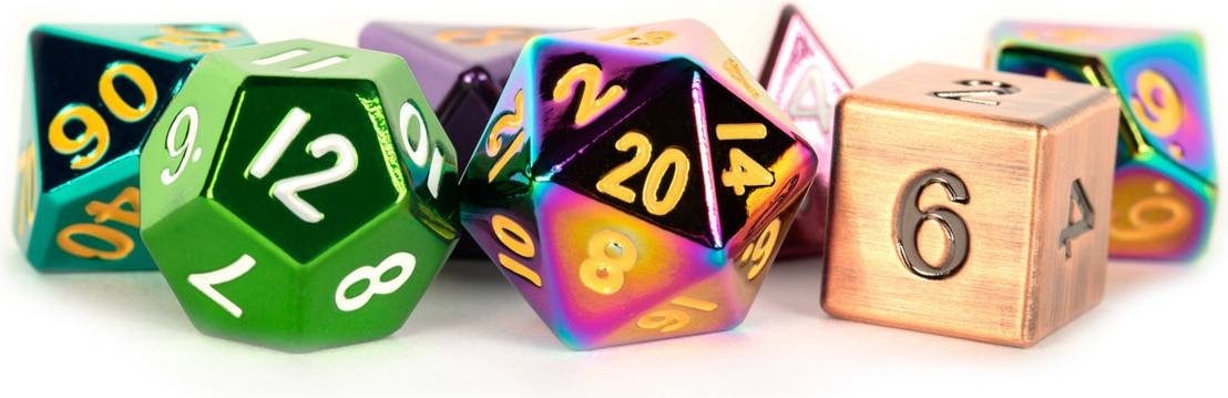 These are a random assortment of factory second metal dice. These dice have slight scratches/cosmetic imperfections that do not effect rolling.