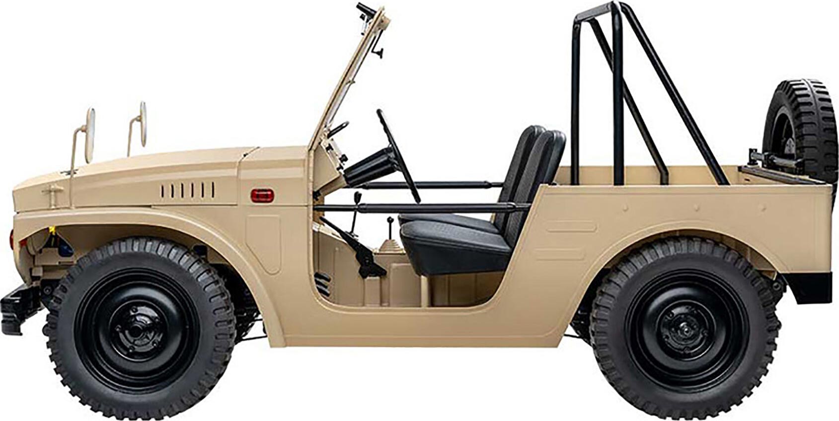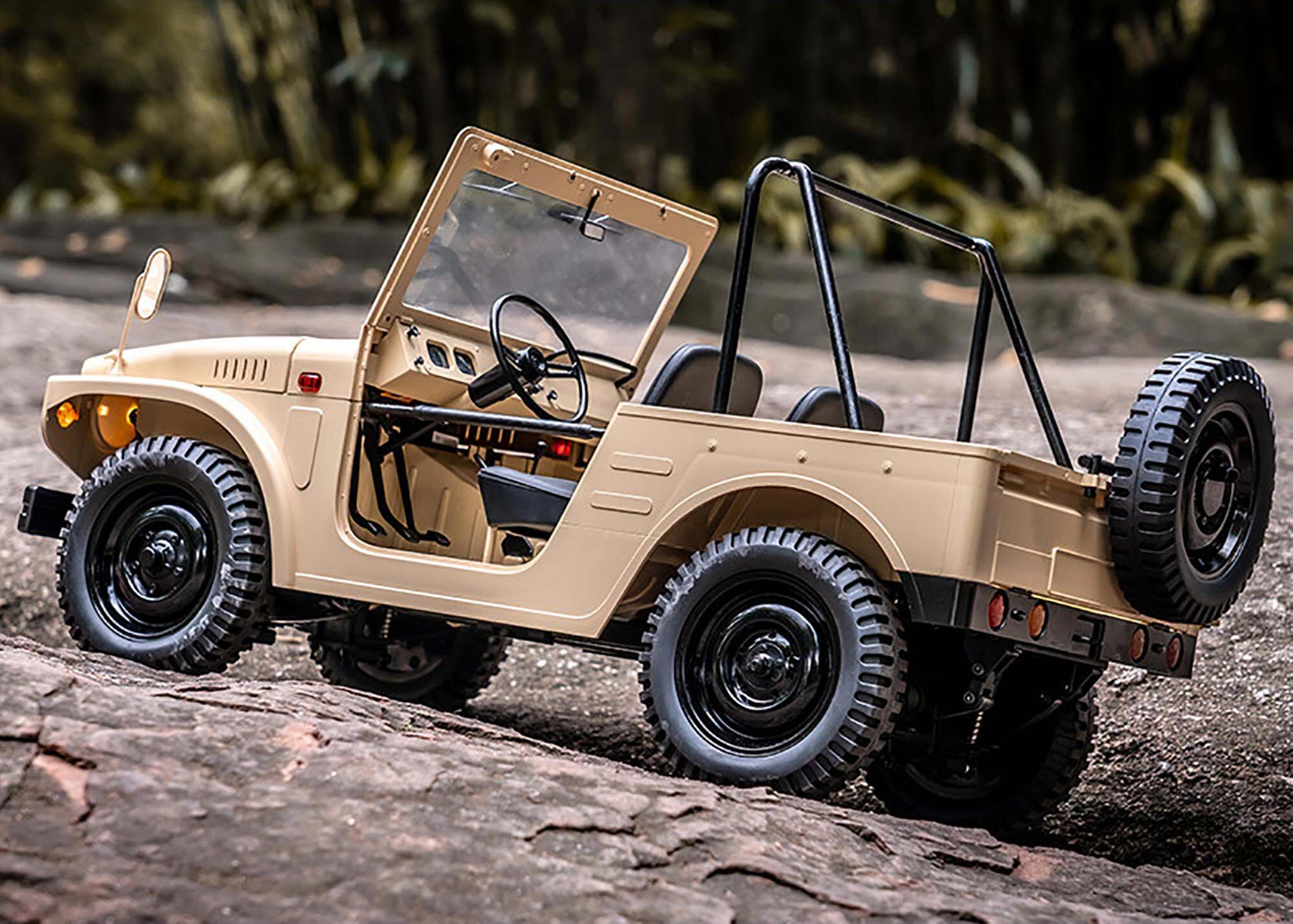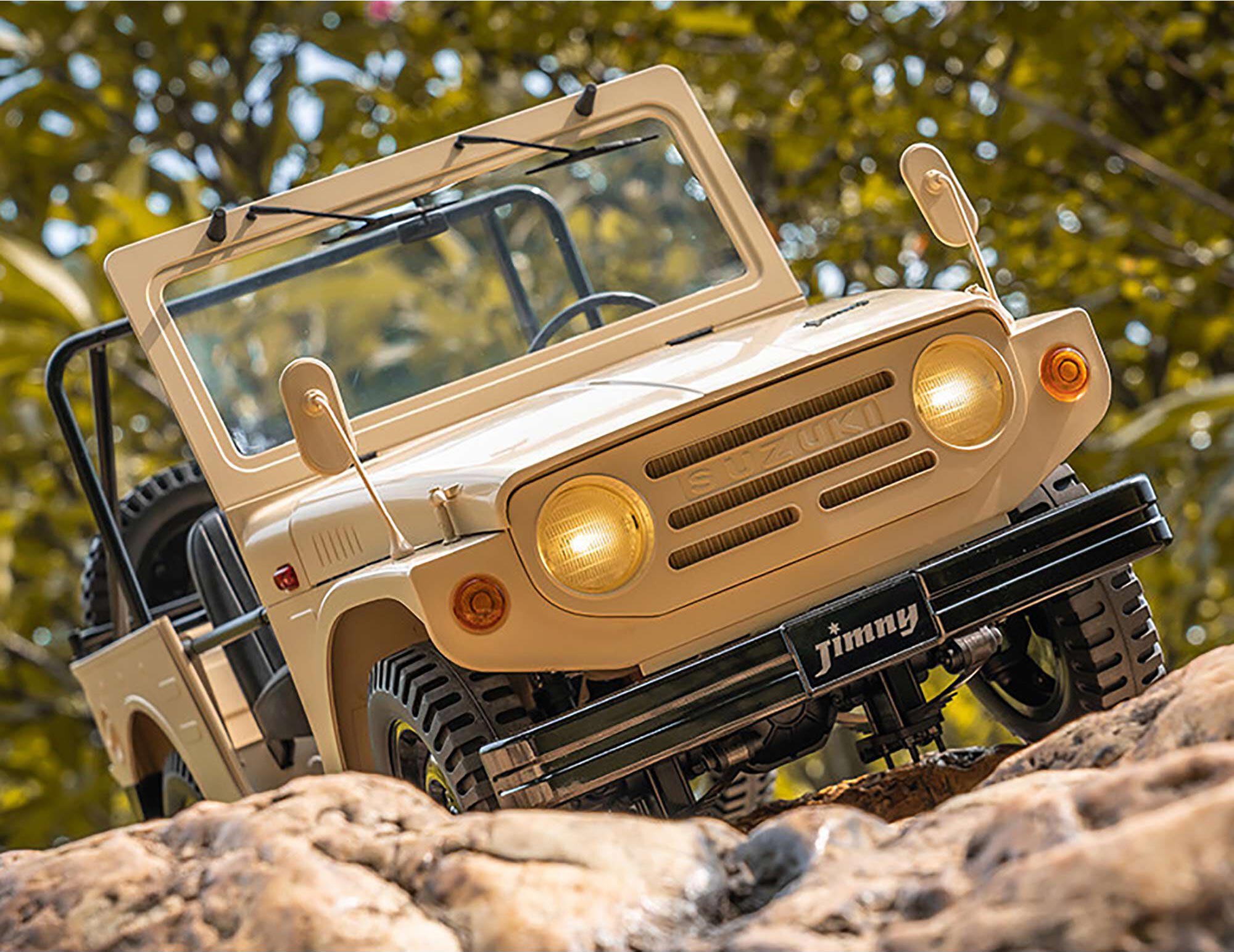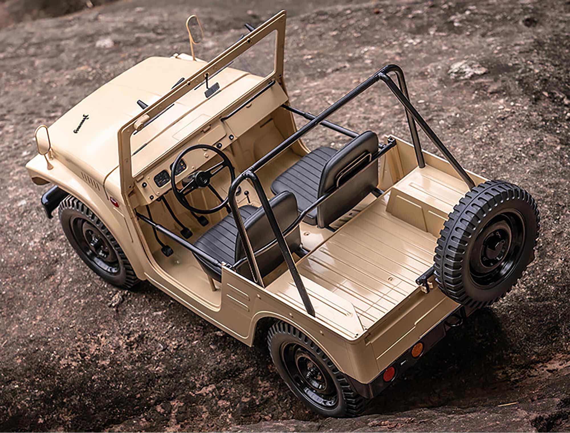 FMS is proud to present this 1/6 scale officially licensed Jimny LJ1. It boldly adopts a metal beam, non-load bearing chassis, front and rear leaf spring suspension and universal joints. The soft-rubber-wrapped seats feature a cushion like softness and can be collapsed, making them a perfect match for 1/6 figures.