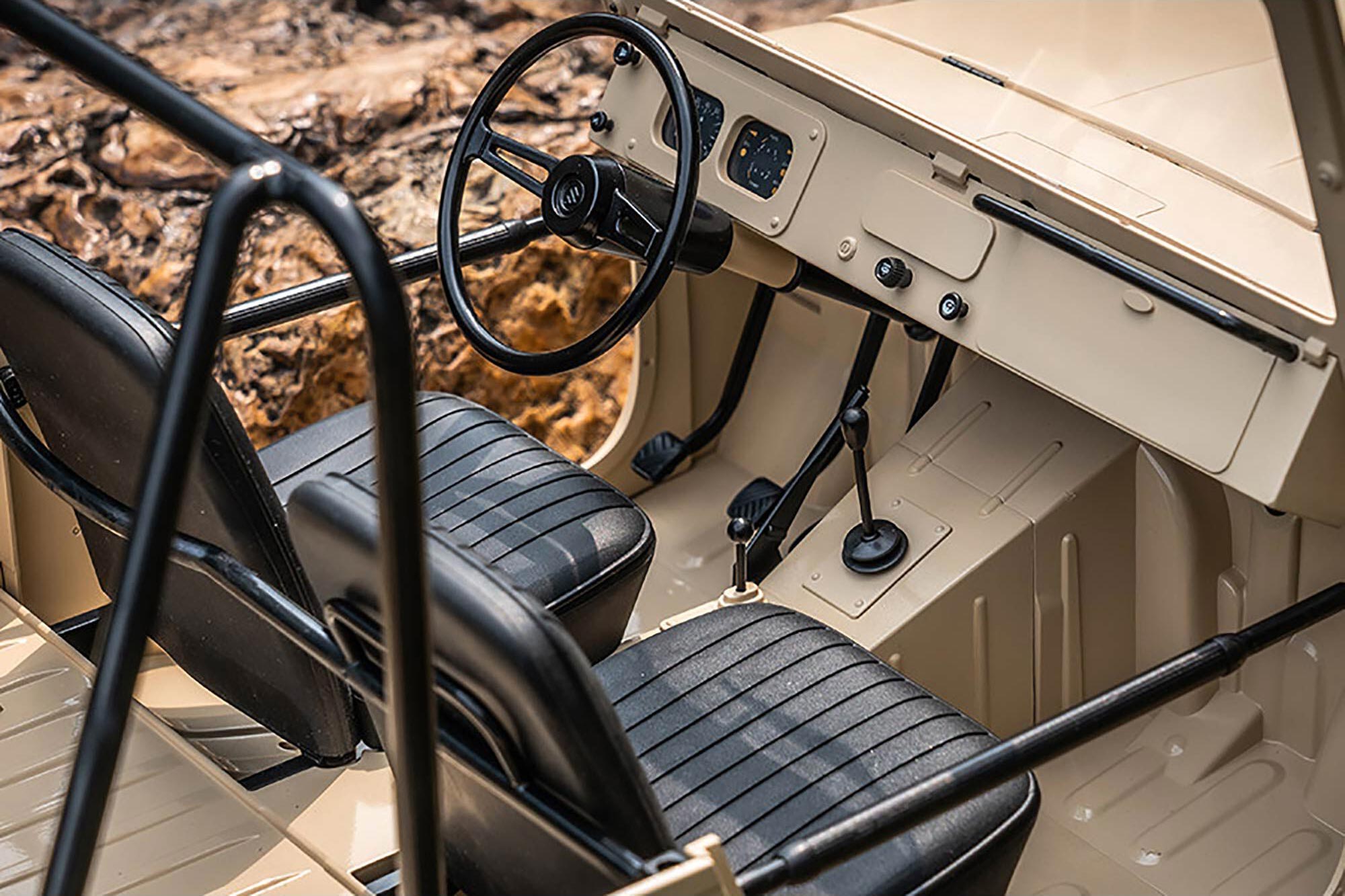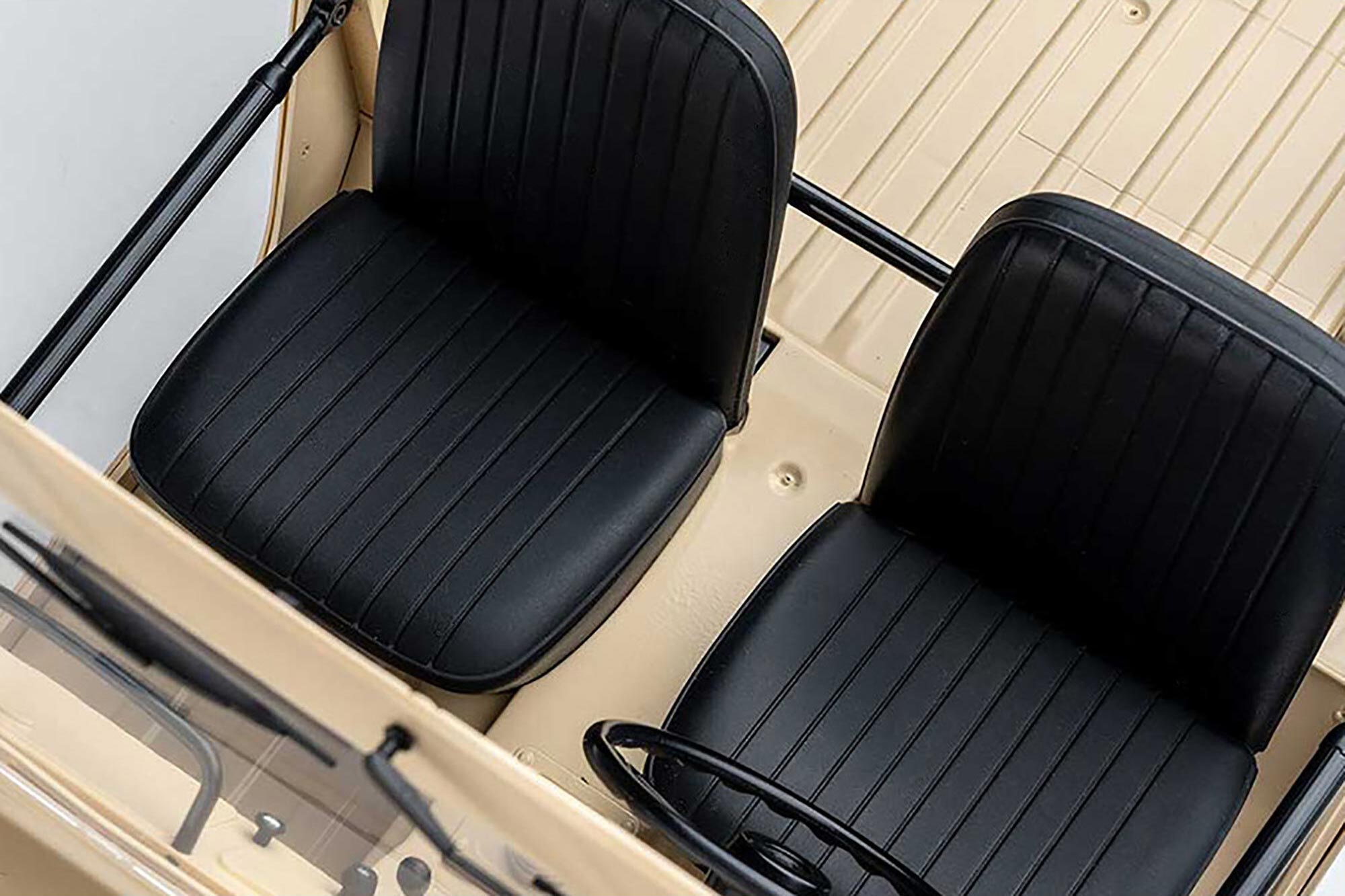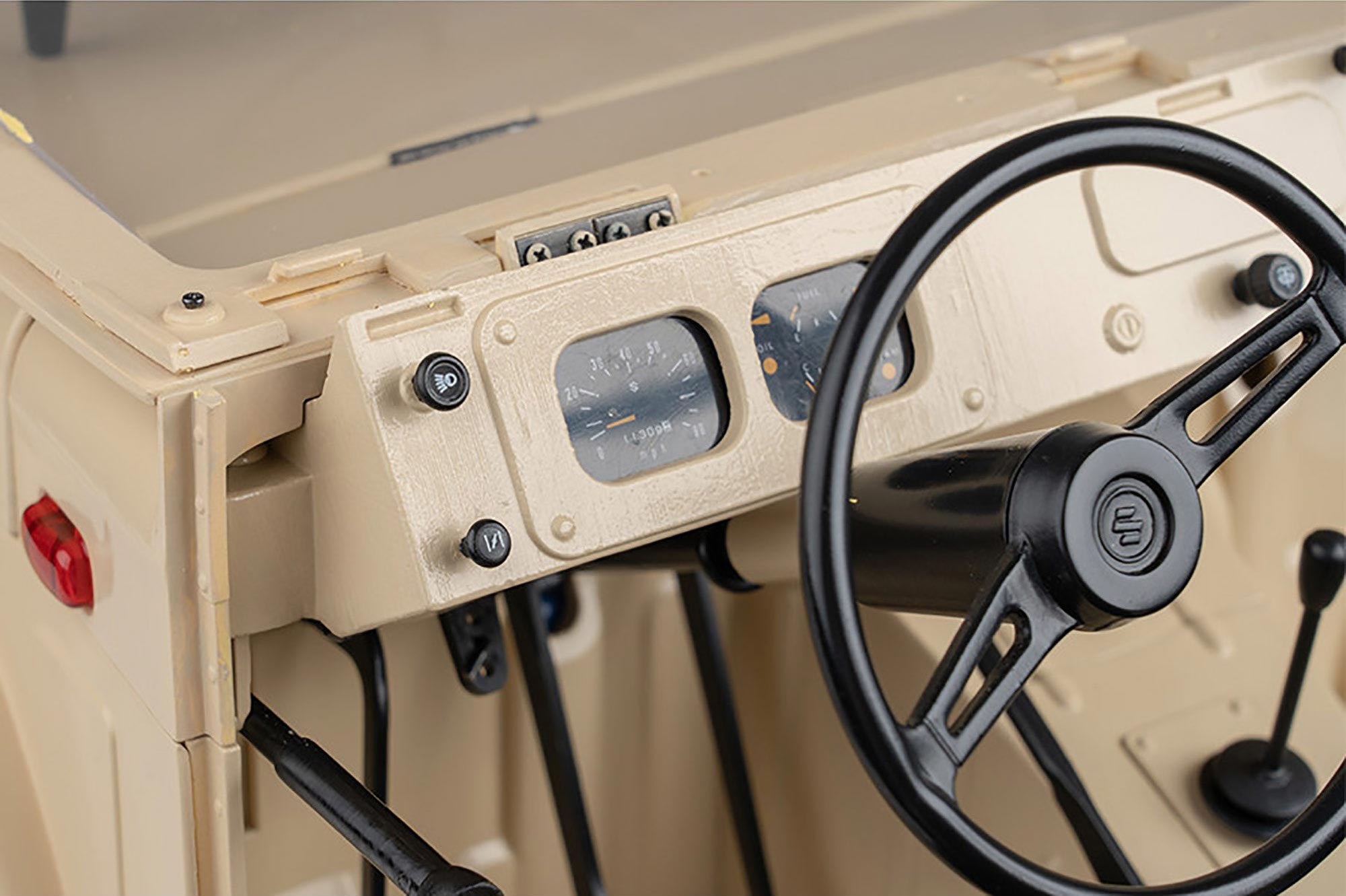 Marvelous interior detailing is on full display, from the adjustable windshield and safety bars at the door positions on both sides, the real-lenses mirrors, to the linked steering wheel; from the miniature shadow instrument panel, mechanical buttons, to the manual gearshift, foot pedal set and so on.