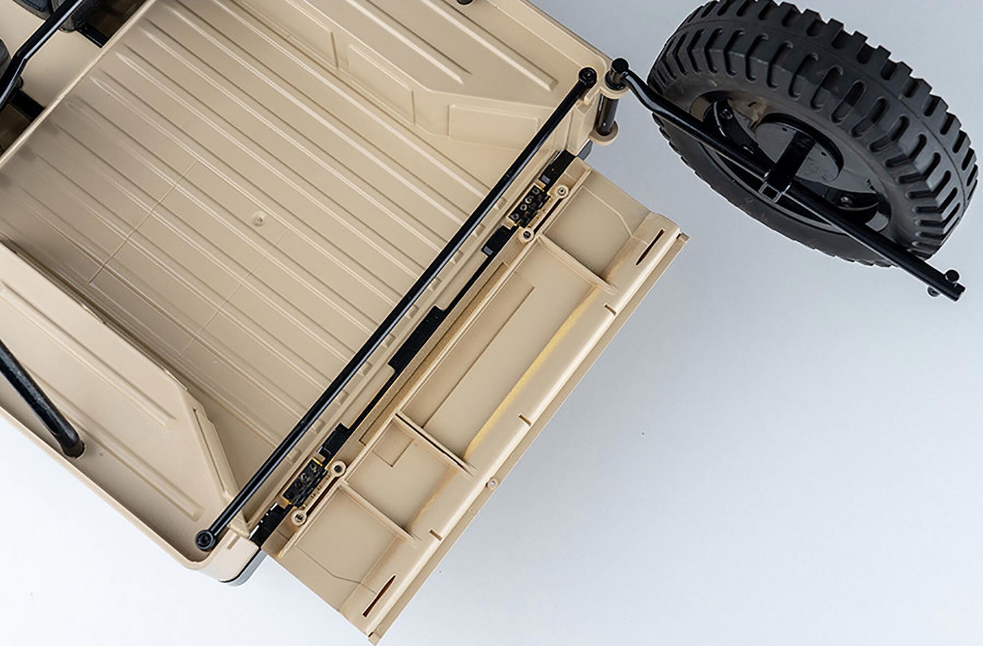 Different scale styling can be achieved with the large rear bucket space, perfect for various simulated parts when the tailgate is lowered and the spare tire carrier is opened to the right.
