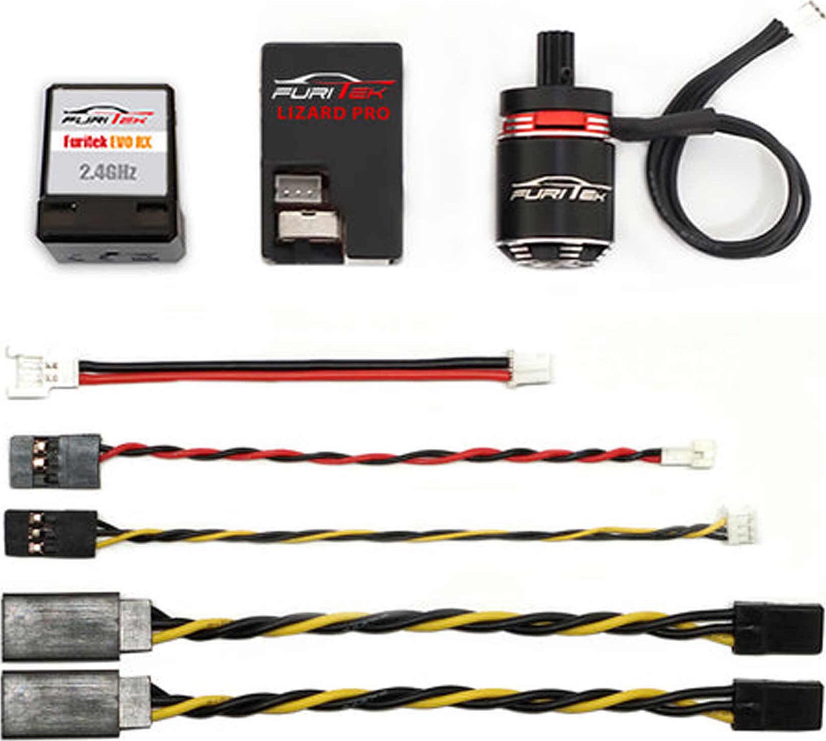 Introducing the Furitek STINGER brushless power system for Hobbyplus CR18P EVO, the system includes the Micro Komodo 1212 3450kv with lighter and smaller size yet very powerful at low speed but also more powerful and fast at high speed, a Lizard Pro esc and a micro receiver that is compatible to the stock Hobbyplus CR18P EVO radio. The motor is designed with high torque at low speed crawling and with a special firmware from the Lizard Pro ESC, this motor is super smooth without any cogging at both low and high speed operation. This power system is a complete drop-in combo for Hobbyplus CR18P EVO allowing a new brushless upgrade setup without having to change a new radio system. With Furitek FURICAR mobile phone app and Bluetooth module, users can set up any parameters on the run without touching the truck, creating seamless adjustments for your favorite settings.