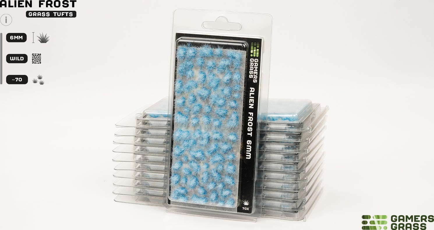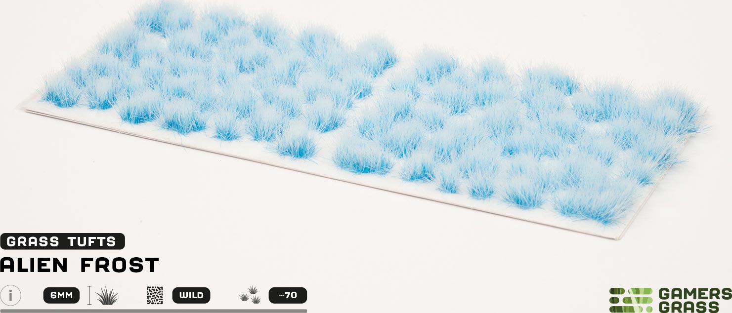 Tufts with a light blue color. Adding a sense of cold and mist, they are perfect for your icy plains, frost-covered planets and mysterious scenarios. Enhance your miniature basing experience with Alien Frost, adding a baffling diversity to your bases and models.
