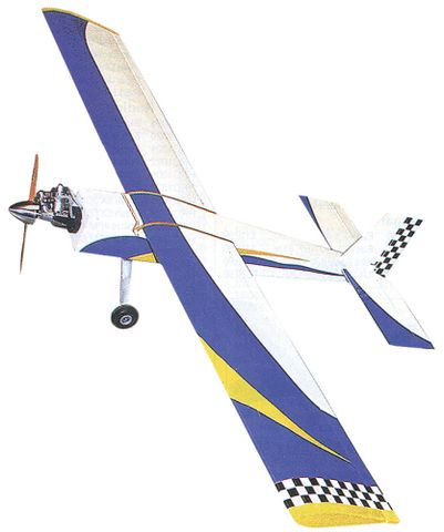 Requires a 2-channel radio with standard servos or a 3 to 4-channel radio with micro servos and a .074 to .10 2-C engine. Also required is all hardware, fuel tank, engine mount, spinner, prop, linkage, and covering material.
