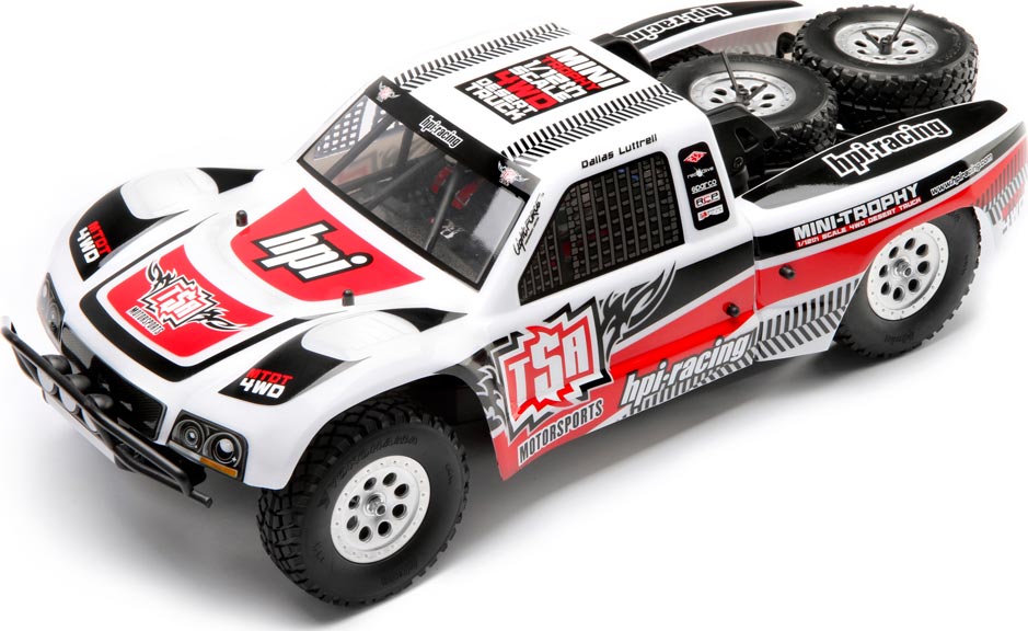 The HPI Mini-Trophy Truck uses nothing but the finest grade, high-impact nylon plastic on the most critical areas of the truck - from the bumpers to the super beefy arms and everything in between. HPI's industry known strength and durability makes the MINI-TROPHY friendly for all, and most of all - FUN!