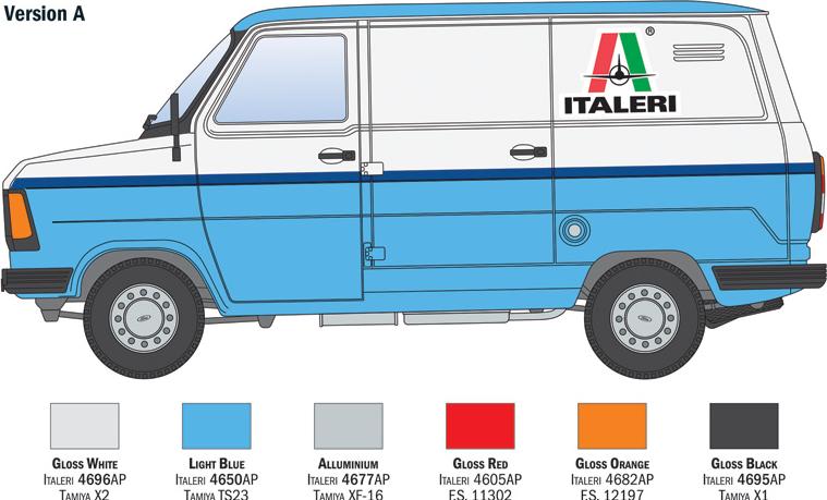 The Transit is the name of a line of light commercial vehicles produced by Ford/Germany and Ford/Great Britain starting in 1953 for the European market. The real turning point was represented by the “Second Series” Transit introduced to the market in 1965. The vehicle’s configuration, characterized by a front-mounted engine, wide track, and low loading floor, was ideal for optimizing transport activities. The Transit was also available—an innovation for its time—in a huge number of versions and configurations, ranging from the panel van to the chassis cab with flatbed and the minibus. A true partner for craftsmen, small businesses, and large companies throughout Europe that needed to meet short-range commercial mobility requirements. Italeri also used Ford Transit vehicles to deliver a special product: our scale model kits.