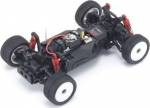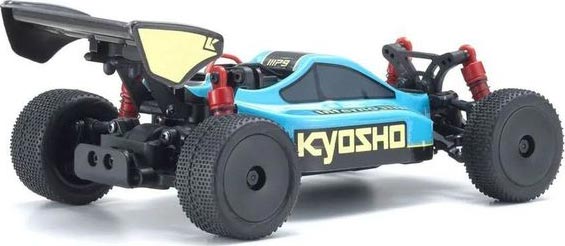 Simply add eight AAA-size alkaline batteries to this Readyset and the MINI-Z Buggy brings the fun of R/C car action. The advanced compact design includes 4WD drive train with slipper clutch to protect the gear system, and 4-wheel independent double wishbone suspension with oil-filled shocks to deliver true racing buggy performance. Most critical components are protected within the high-rigidity dustproof chassis shell. 7-stage geared steering servo provides plenty of torque for precision steering response and combines with the control program to realize the MINI-Z’s signature linear handling and light feel. The circuit board also features manual volume adjustment for the optional gyro unit that stabilizes straight line running and improves cornering control. Modeled on the popular Inferno MP9, the MINI-Z buggy body matches performance with style featuring a distinctive new printed color scheme complimented by black wheels for the sharpest looking machine on the track. The fully pre-assembled Readyset package makes it simple and enjoyable for anyone to experience advanced R/C buggy performance, whether it’s your first car or as fun-driving second car.