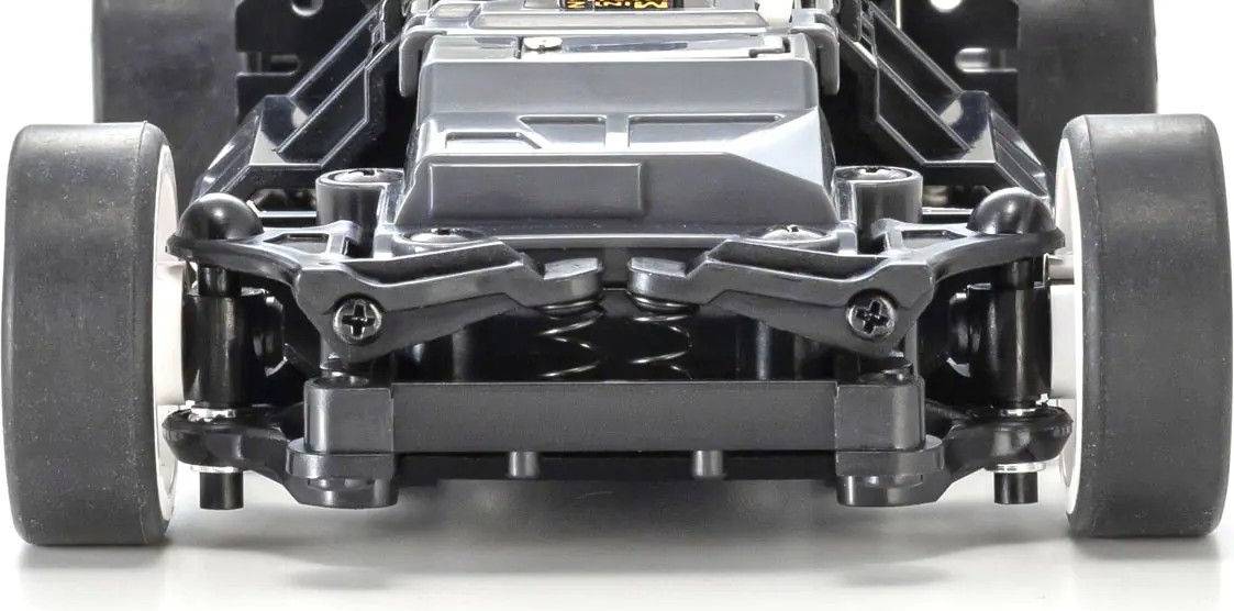 Enjoy the full experience of high-performance R/C car racing right out of the box; just insert batteries into the car and transmitter. This is the simplicity of Kyosho Readyset packages. The small scale of the MINI-Z Racer is ideal for driving indoors and for people just becoming familiar with R/C cars. This MINI-Z RWD Readyset includes a renewed 2-wheel drive chassis at its core. Previous Readyset packages incorporated the 3rd generation MR-03 chassis, but the new RWD Readyset includes the 4th generation MR-04 chassis that was first released in 2023. While retaining some basic elements of the MR-03 design, the new MR-04 demonstrated its lower center of gravity and remodeled steering design with blistering speed and excellent handling in the top-of-the-line EVO2 debut model. The MR-04 chassis is mounted with R/C system and features a completed body finished to display model standard. This Readyset includes the same standard MR-04 chassis as other high-end MR-04 models and includes user-friendly 130-class brushed motor and the reliable Syncro KT-531P pistol grip transmitter. Just insert 4 x AAA alkaline batteries into both the car and the transmitter, and you’re ready for the fun to begin. High-performance comes straight from the standard setup, but you can tune up for elite-level performance with a wide range of MINI-Z optional parts. With its dynamic maneuverability display model finish, the updated MR-04 chassis takes the authentic R/C experience to a higher level.