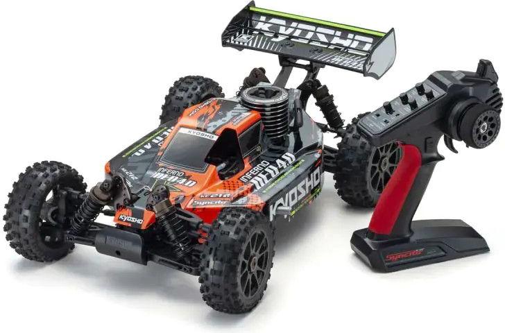 Kyosho’s 1/8 scale Inferno GP buggy series is recognized worldwide as a top-class racing model. The Inferno NEO 4.0, based on the Inferno, comes as a Readyset with a pre-assembled chassis, installed engine, R/C system, and painted body. It’s ready to race after inserting batteries into the included pistol-grip transmitter and chassis and filling the fuel tank. For beginners, the challenging engine break-in process is simplified with a break-in ring that eliminates needle adjustments. The smooth-starting engine makes it easy for those new to GP models. Sharing its body with the electric Inferno NEO 4.0 VE, it comes in two color options. High-torque steering and throttle servos from the previous model provide reliable control, even in demanding off-road conditions. For those new to 1/8 scale GP buggies or experienced R/C enthusiasts, the Inferno NEO 4.0 delivers thrilling large-scale buggy performance.