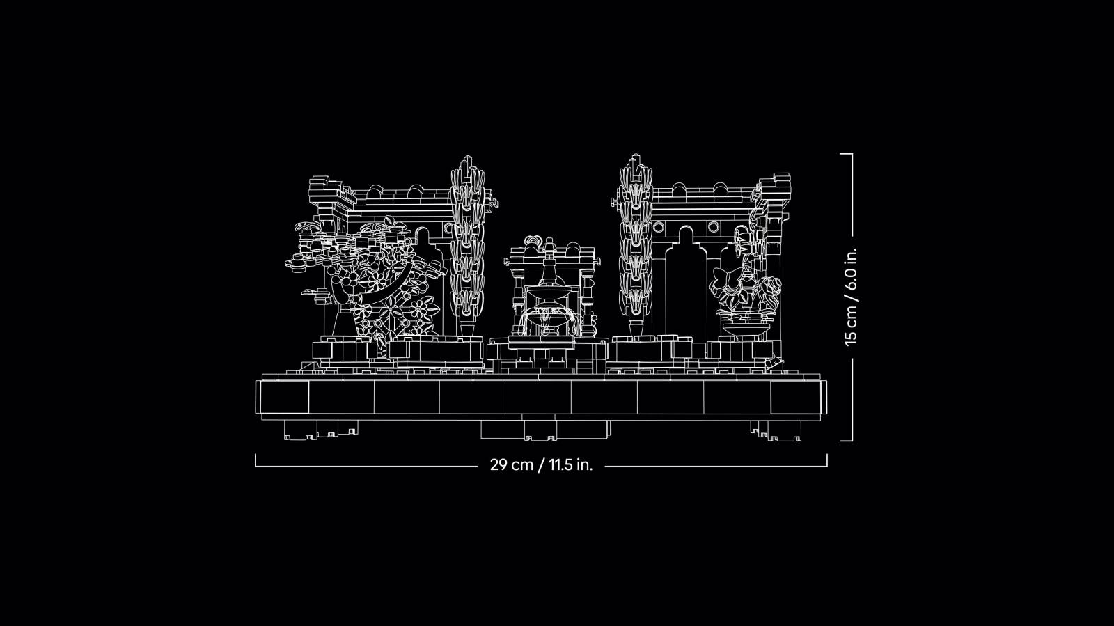 - This 1,302-piece LEGO® garden model measures over 11.5 in. (29 cm) wide