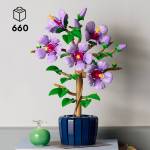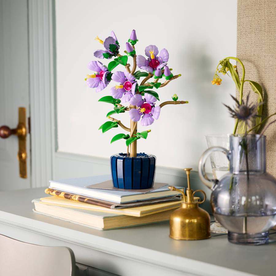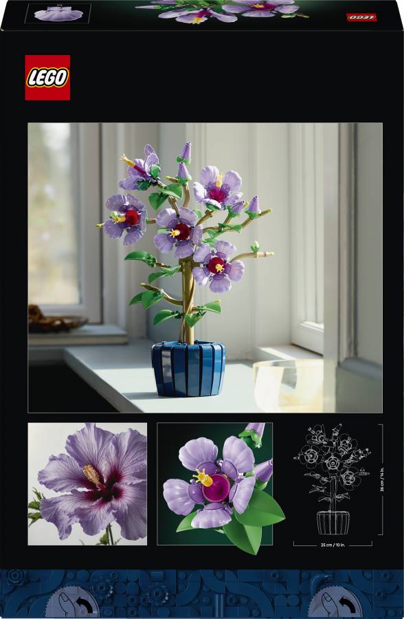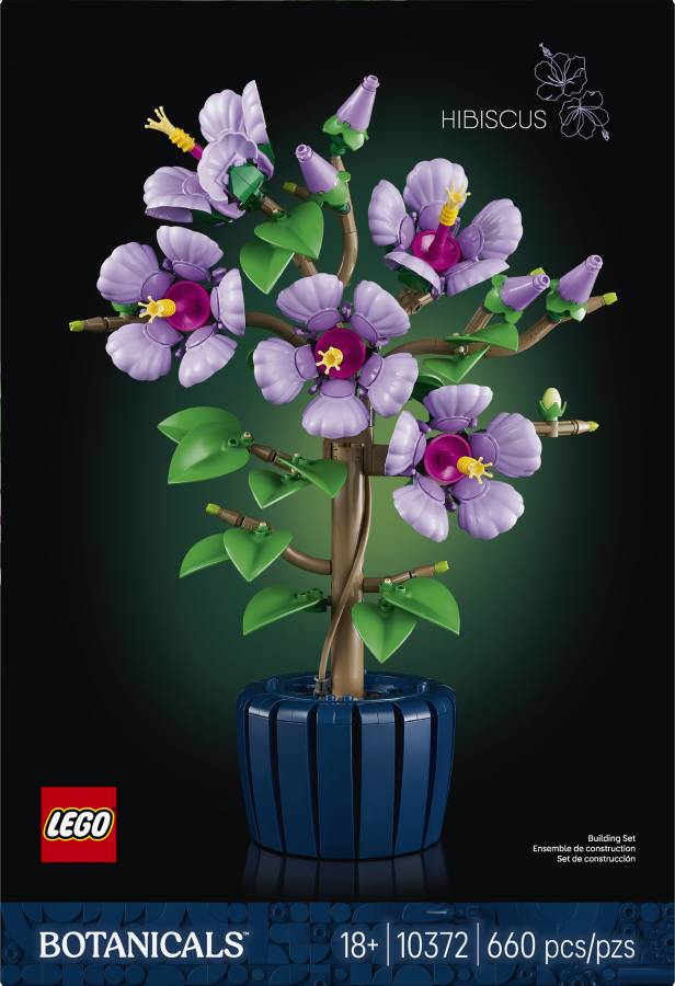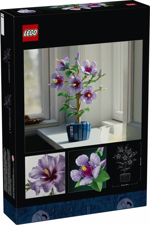 Enjoy building the LEGO plant, which features 5 large blooms, 4 flowers that are about to blossom and 2 young flower buds, before discovering the details. Capturing the gentle beauty of nature, the large blooms have lavender-colored petals and yellow stamens, while the leaves are pale green. Once you’ve finished building the hibiscus, you can move the petals and position the leaves to add a touch of customization to your creation.