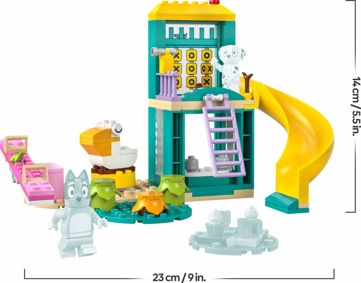 - The set features Bluey and Chloe minifigures and the playground from Bluey