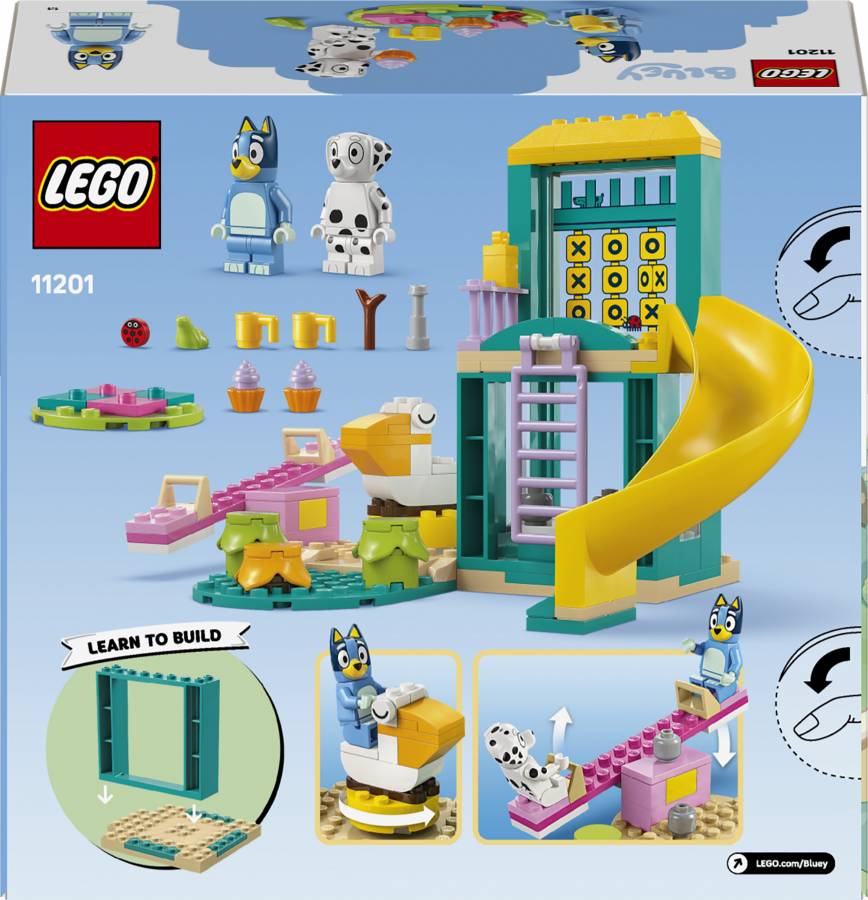 Playground Fun with Bluey and Chloe (11201) is a preschool toy for fans of the Bluey TV show and is designed to deliver endless creative-play possibilities that develop the confidence and problem-solving skills of kids aged 4 and up.