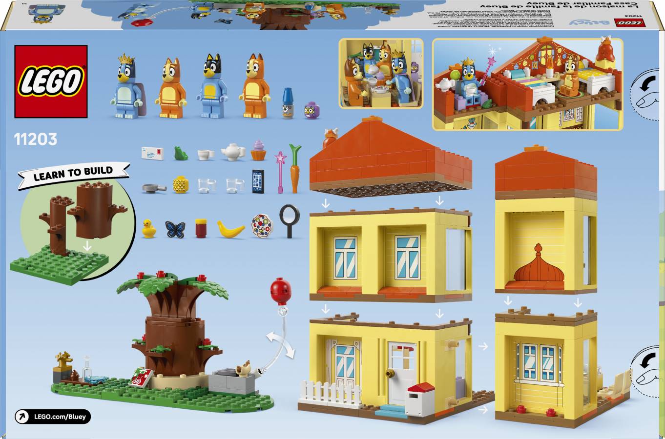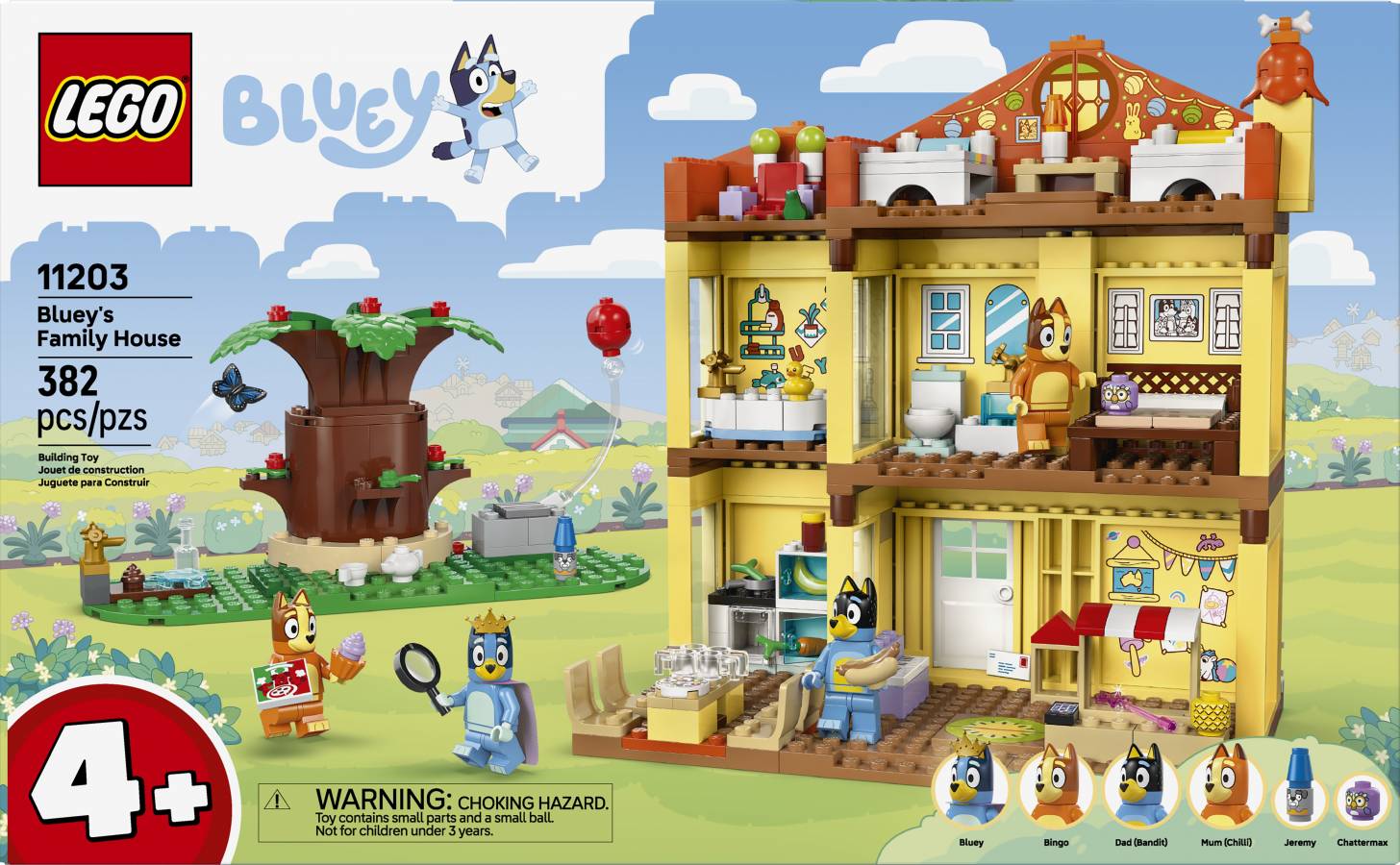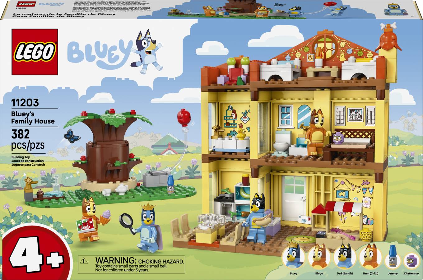 - The playhouse comes with 4 minifigures: Bluey, Bingo, Mum and Bandit
