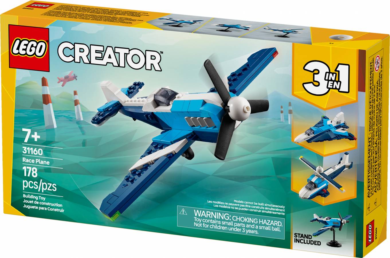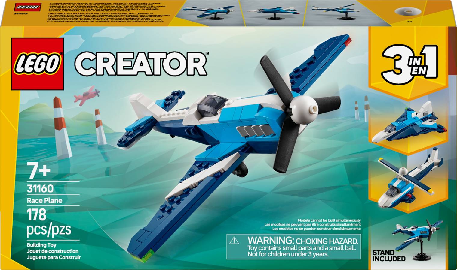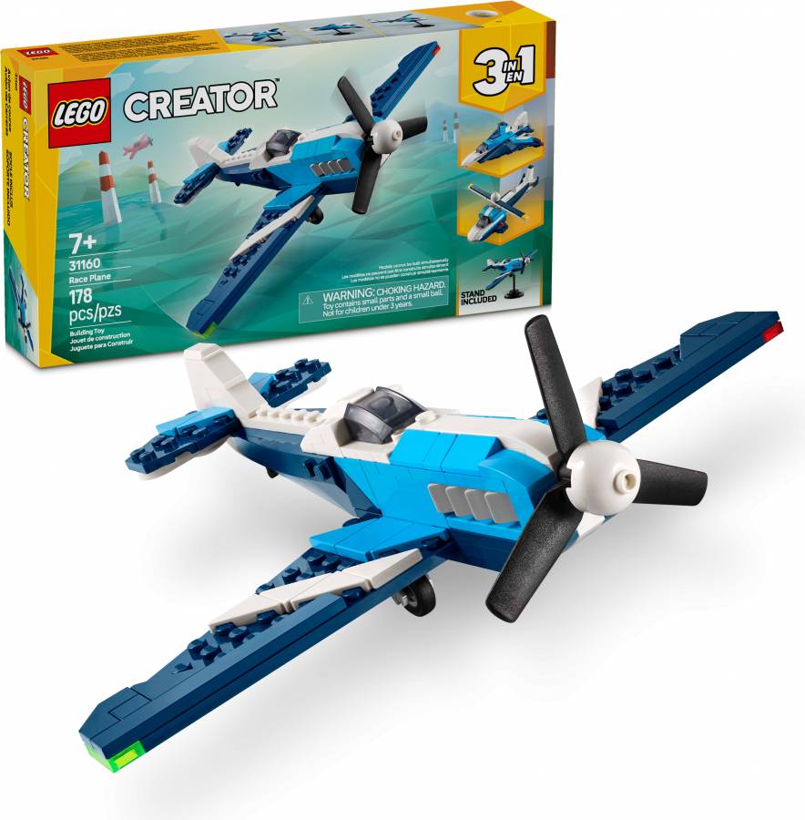 - A 178-piece 3in1 set with a Race Plane toy measuring over 8.5 in. (21 cm) wide