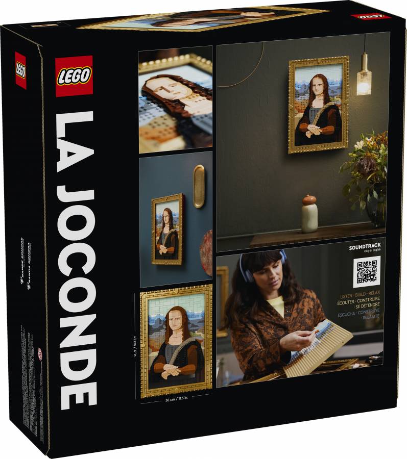 Positioned in its elegant gold frame, this Mona Lisa painting is designed to be hung on a wall. The frame is detachable and can be used to display other LEGO Art pieces from an existing collection. This LEGO set for adults also comes with a building instructions booklet, and after scanning a QR code you can listen to the Soundtrack featuring fascinating content on the Mona Lisa’s timeless appeal.