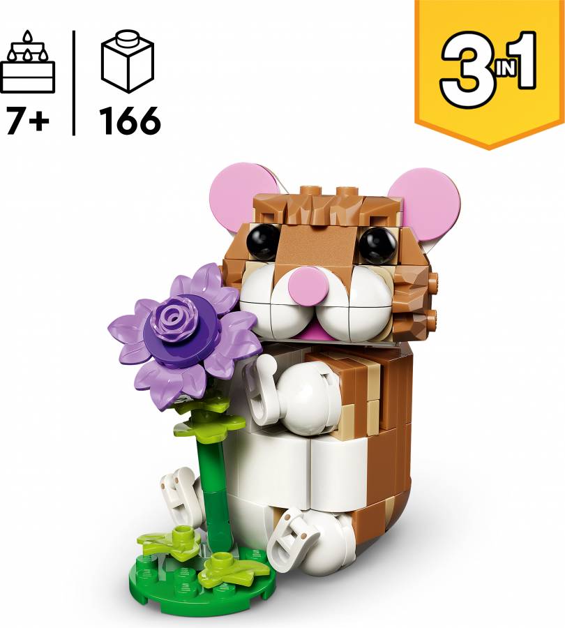 Animal-loving girls and boys aged 7 and over can play out fun stories with this LEGO® Creator 3 in 1 Cute Hamster with a Flower (31376) building toy. This adorable animal playset offers 3 different building options with the same set of bricks.