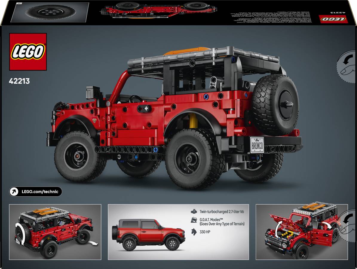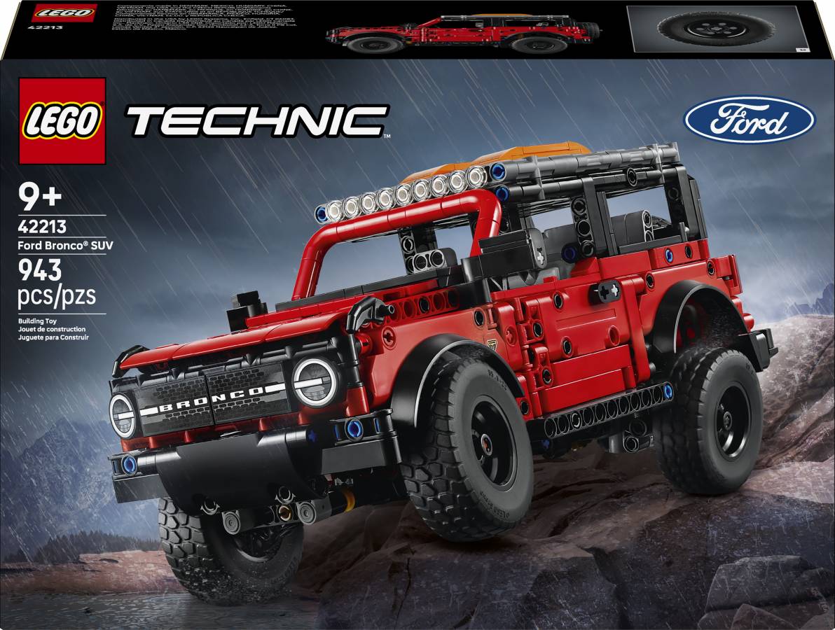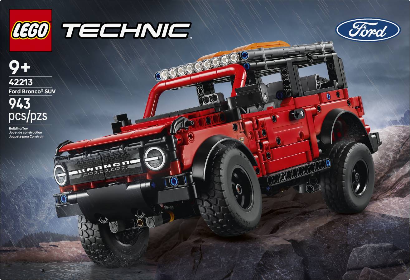 Inspire kids to dream big as they create endless off-road adventures with the LEGO® Technic™ Ford Bronco® SUV (42213) model car kit for boys and girls aged 9 years and up. The set features realistic details including opening doors and suspension with a front axle and a live rear axle.