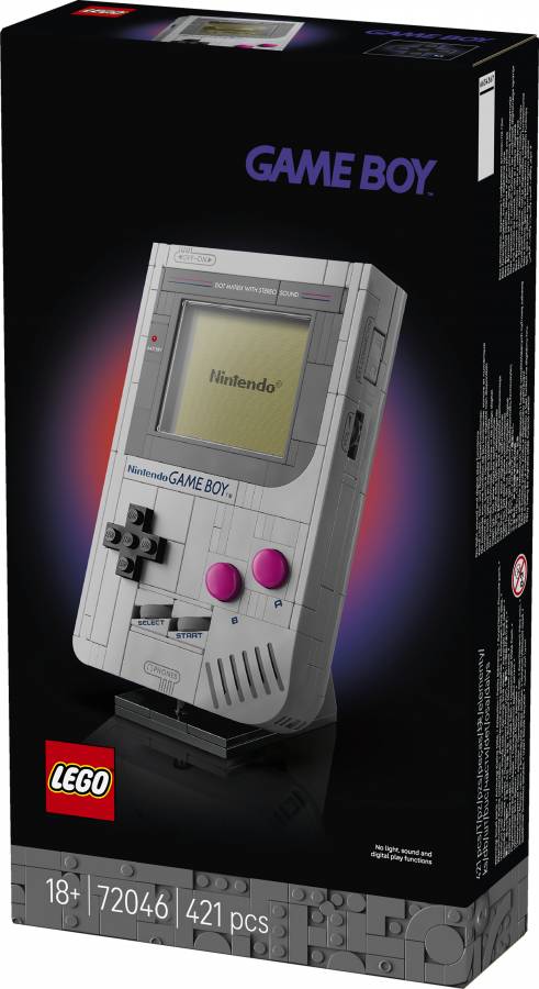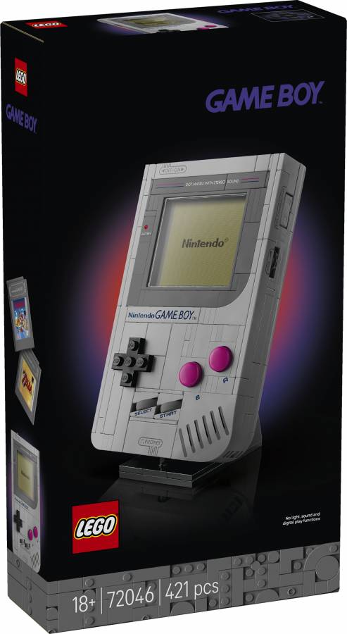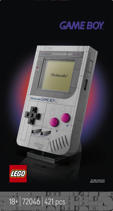 Recapture the excitement you felt when you first played on the Game Boy™ with this LEGO® model building kit for adults (72046). A fantastic gift for fans of Nintendo® video games, the collectible set features a near 1:1 scale brick-built replica of the original Game Boy handheld game system from Nintendo. Press the +Control Pad, A and B Buttons, and SELECT and START, just like on the real system. And the model has other iconic Game Boy details, including the contrast adjustment and volume dial and the Game Pak slot.
