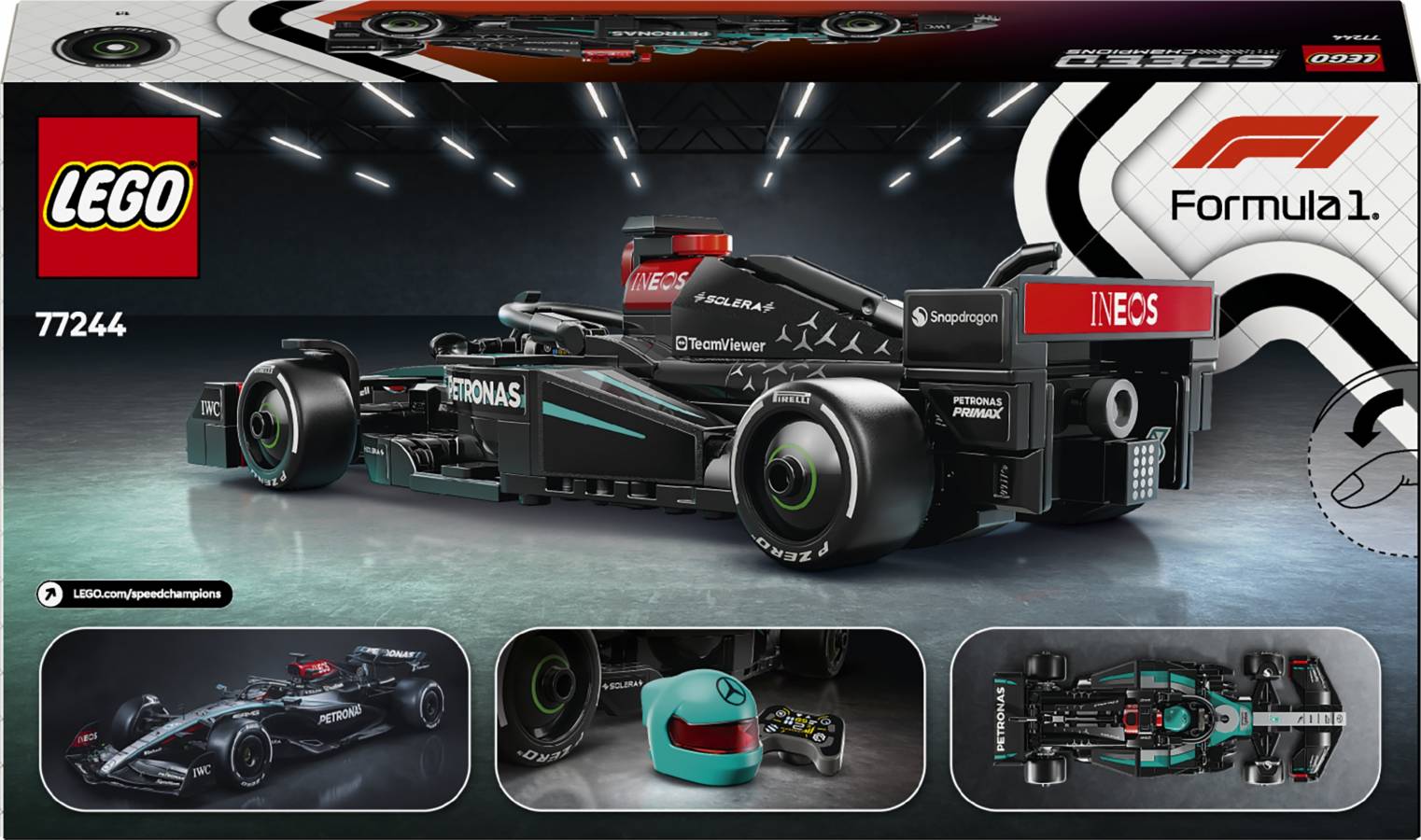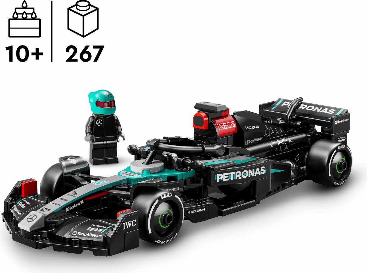 - Includes a Mercedes-AMG PETRONAS F1® Team driver minifigure