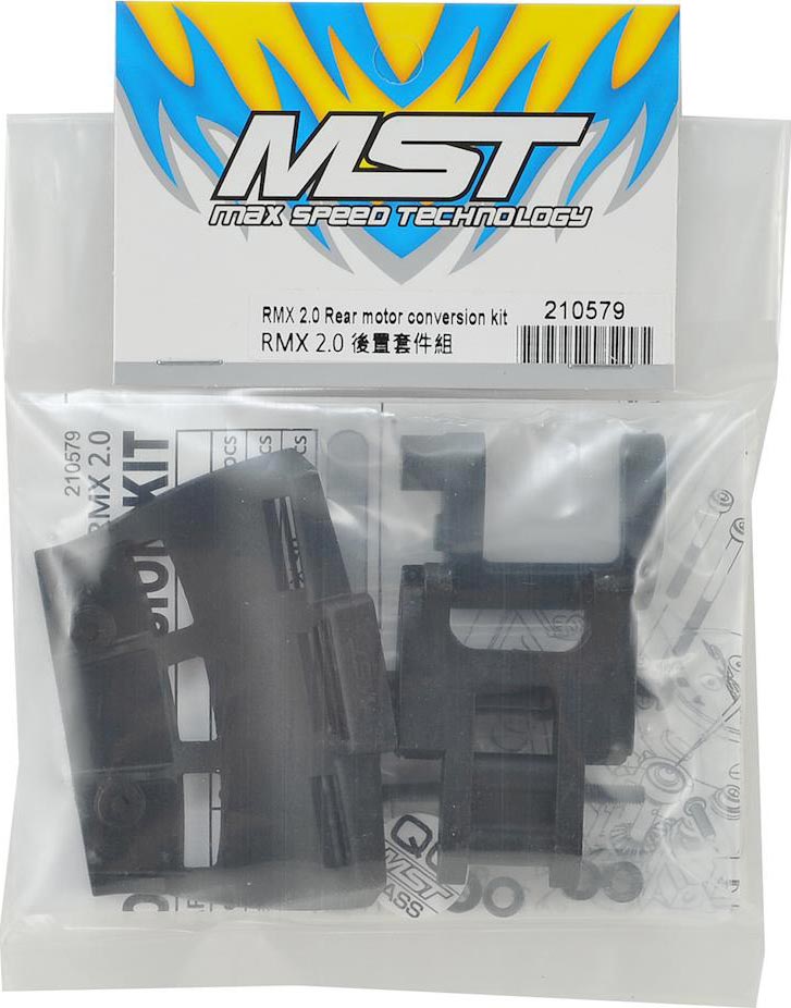The MST RMX 2.0 RMX 2.0 Rear Motor Conversion Kit is a tuning option that will allow you to flip the motor from in front of the rear shock tower, to behind the rear shock tower. Package includes the plastic parts and hardware required to complete the conversion.
