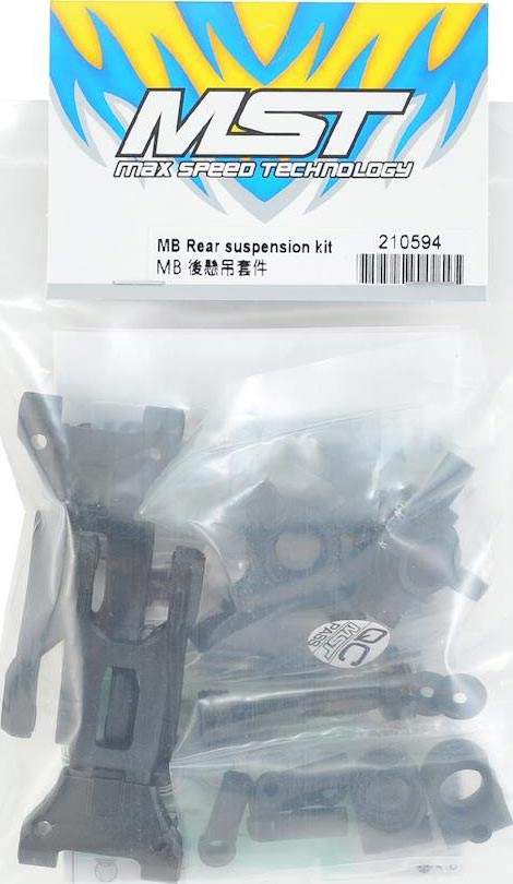 The MST MB Rear Suspension Kit is an all inclusive rear suspension conversion for the RMX2.0 that allows an increase in rear toe in and roll center tuning options. Package includes all the parts needed to convert the rear suspension and instructions.